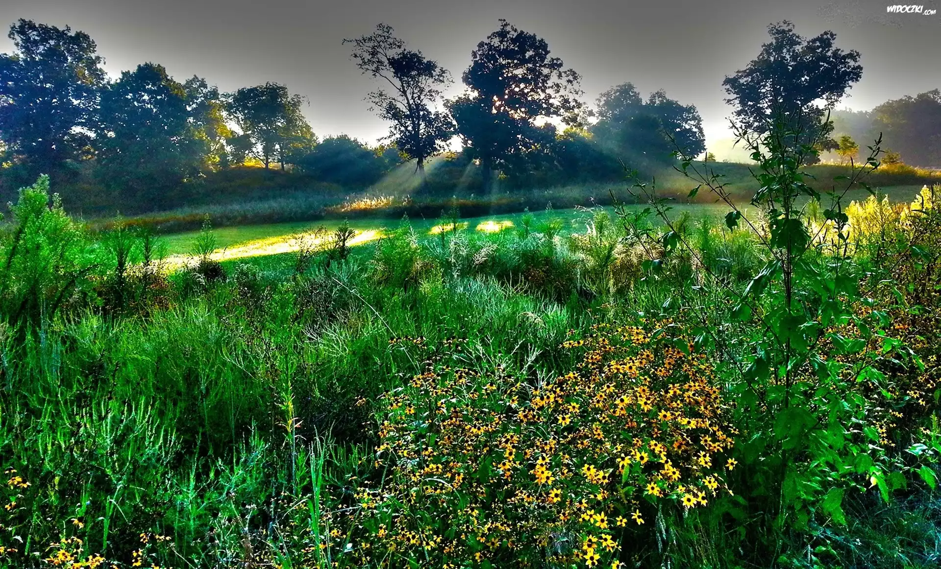 Łąka, Kwiaty, Promienie, Słońca, Poranek