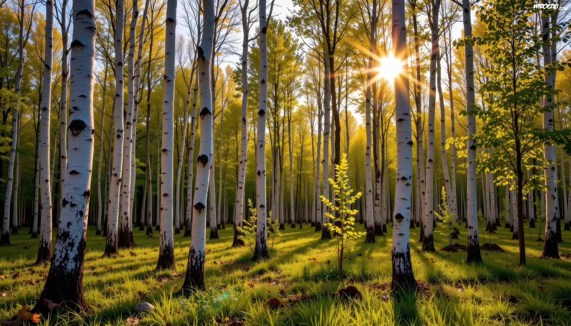 Zdjęcia, Las, Brzozy, Promienie słońca