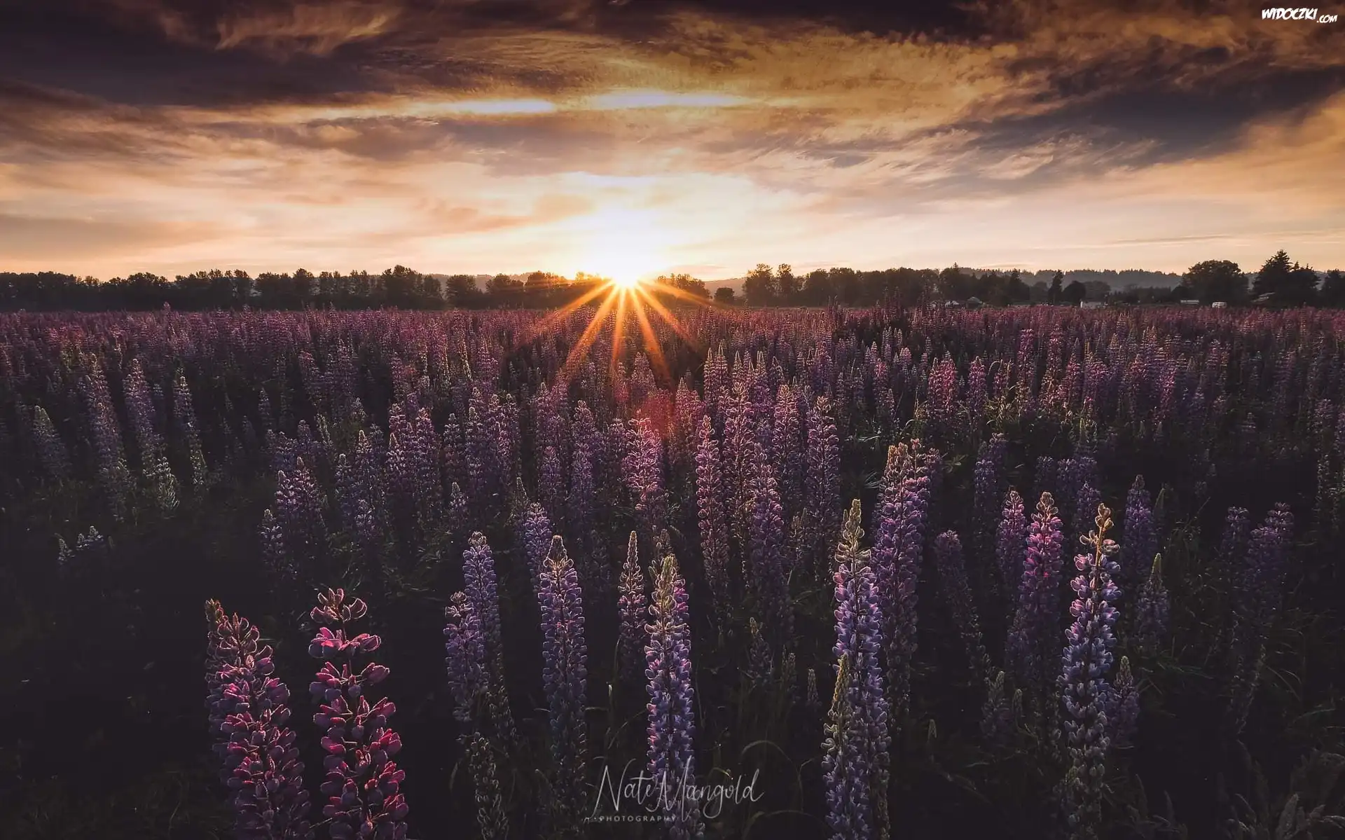 Zdjęcia, Łubin, Plantacja, Zachód słońca