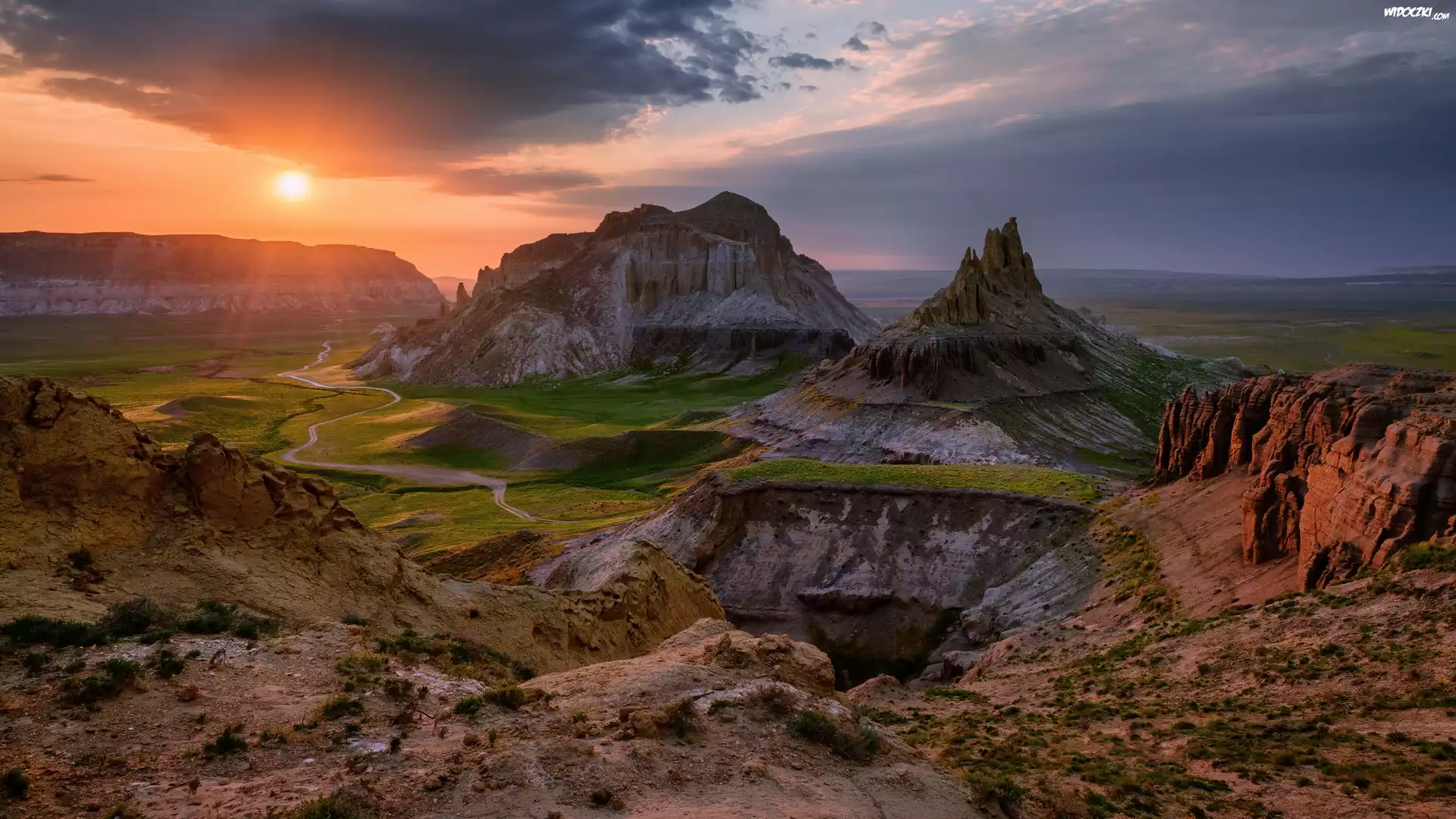 Zdjęcia, Kazachstan, Manggystau, Skały, Airakty, Dolina Zamków, Zachód słońca