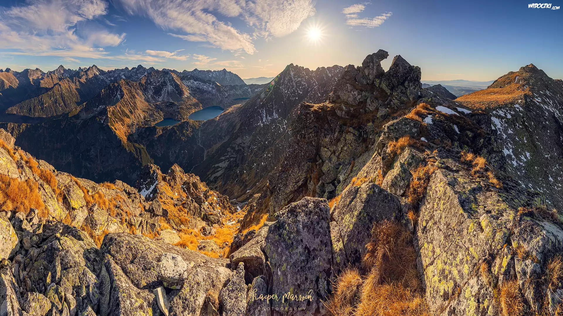 Zdjęcia, Polska, Góry, Tatry, Skały, Przełęcz Krzyżne, Promienie słońca