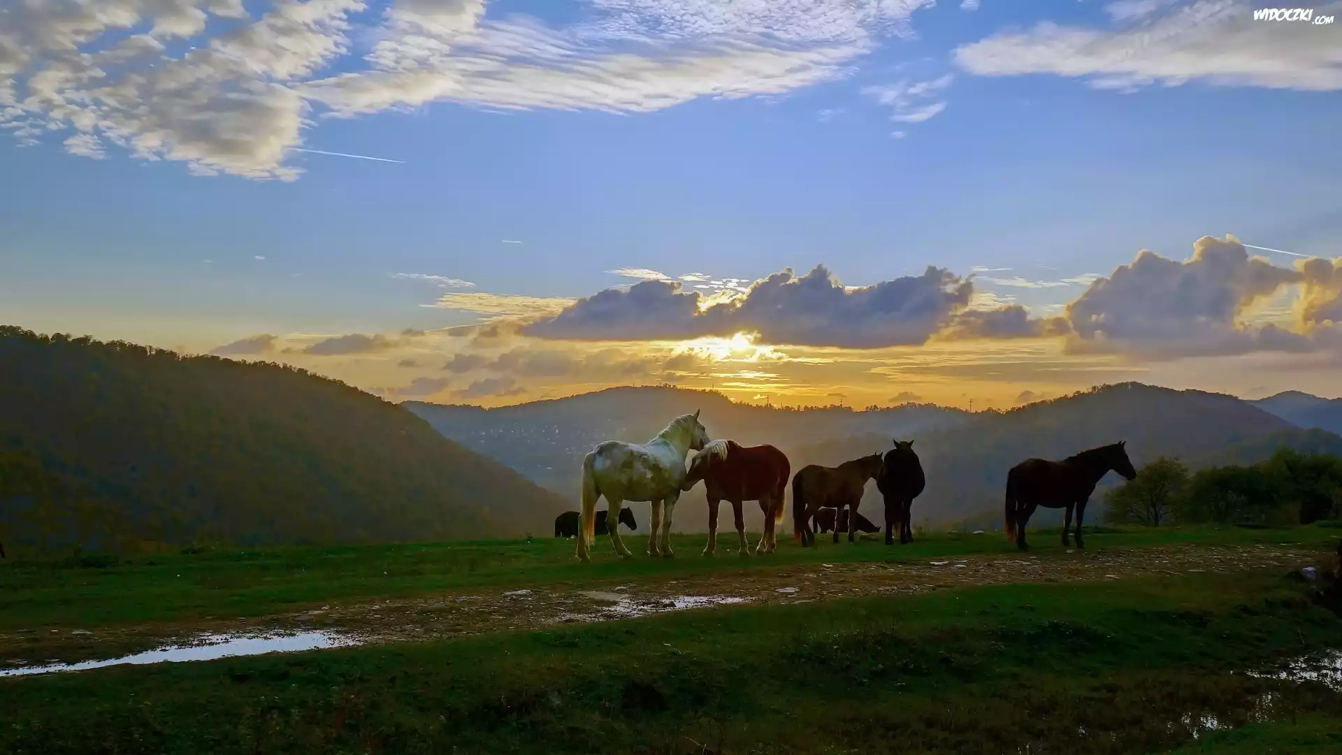 Zdjęcia, Wschód, Słońca, Konie