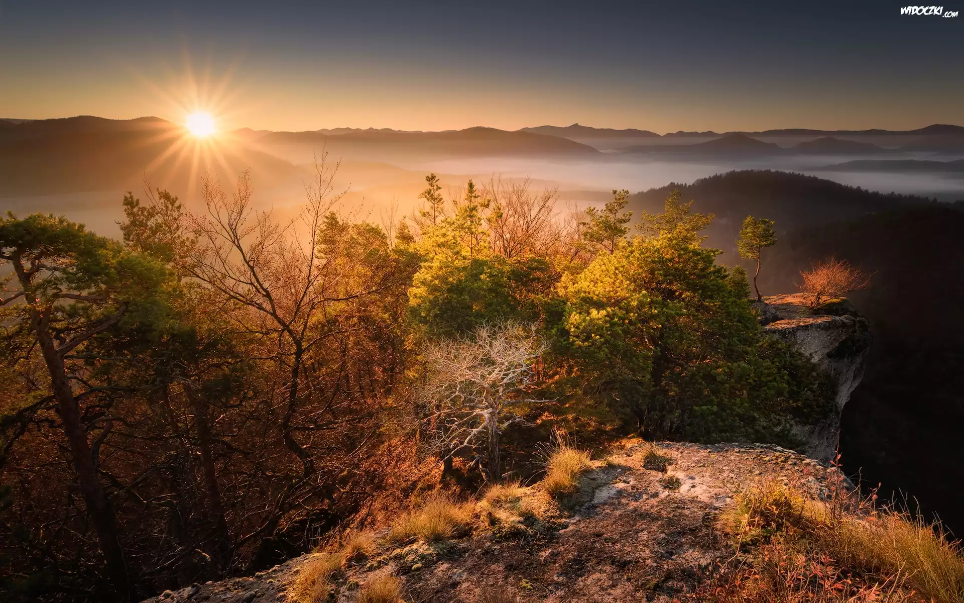 Wschód słońca, Góry, Jesień, Roślinność, Sulov, Słowacja