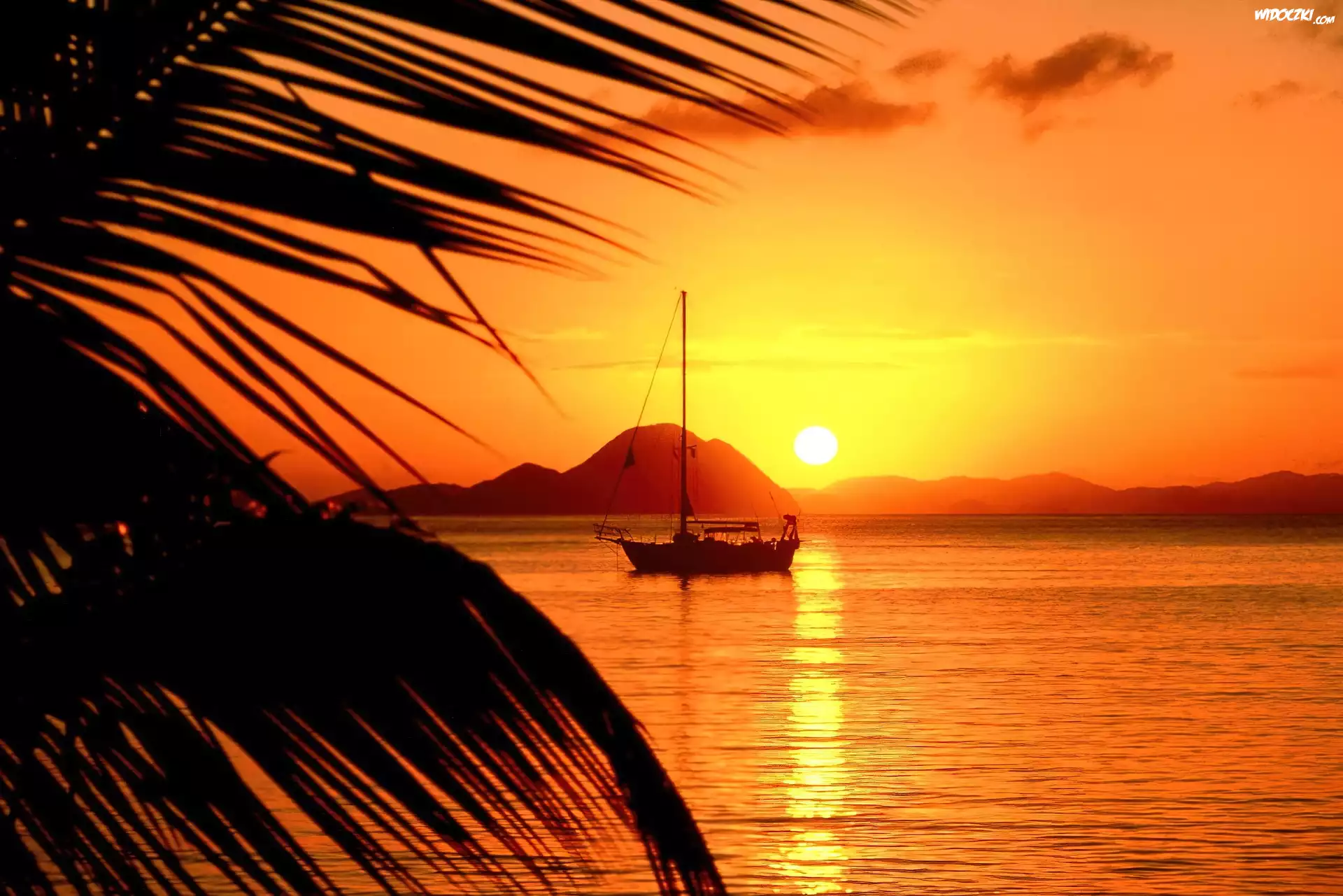 Zdjęcia, Żaglówka, Zachód, Słońca, Palma