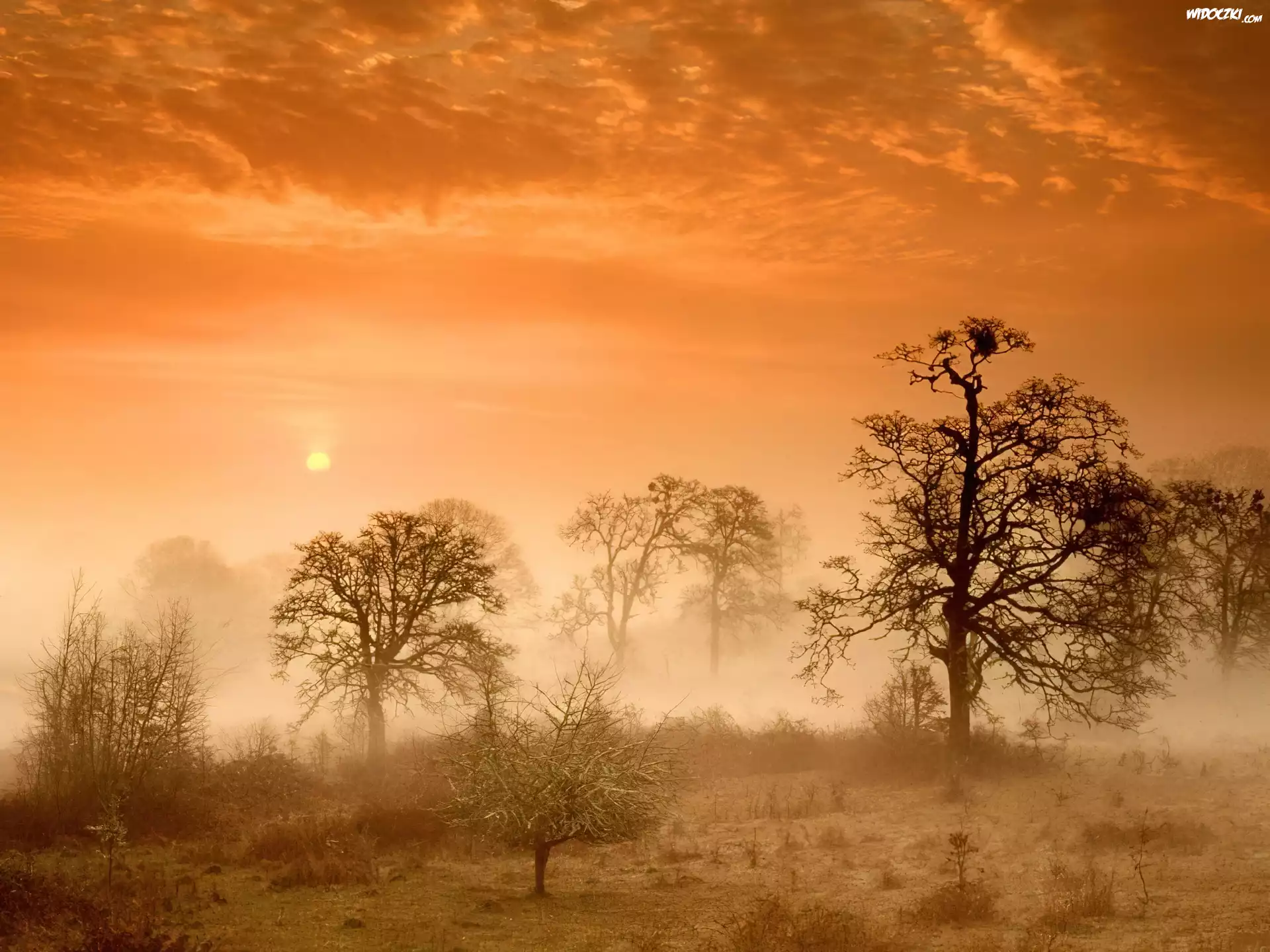 Zdjęcia, Zachód Słońca, Drzewa