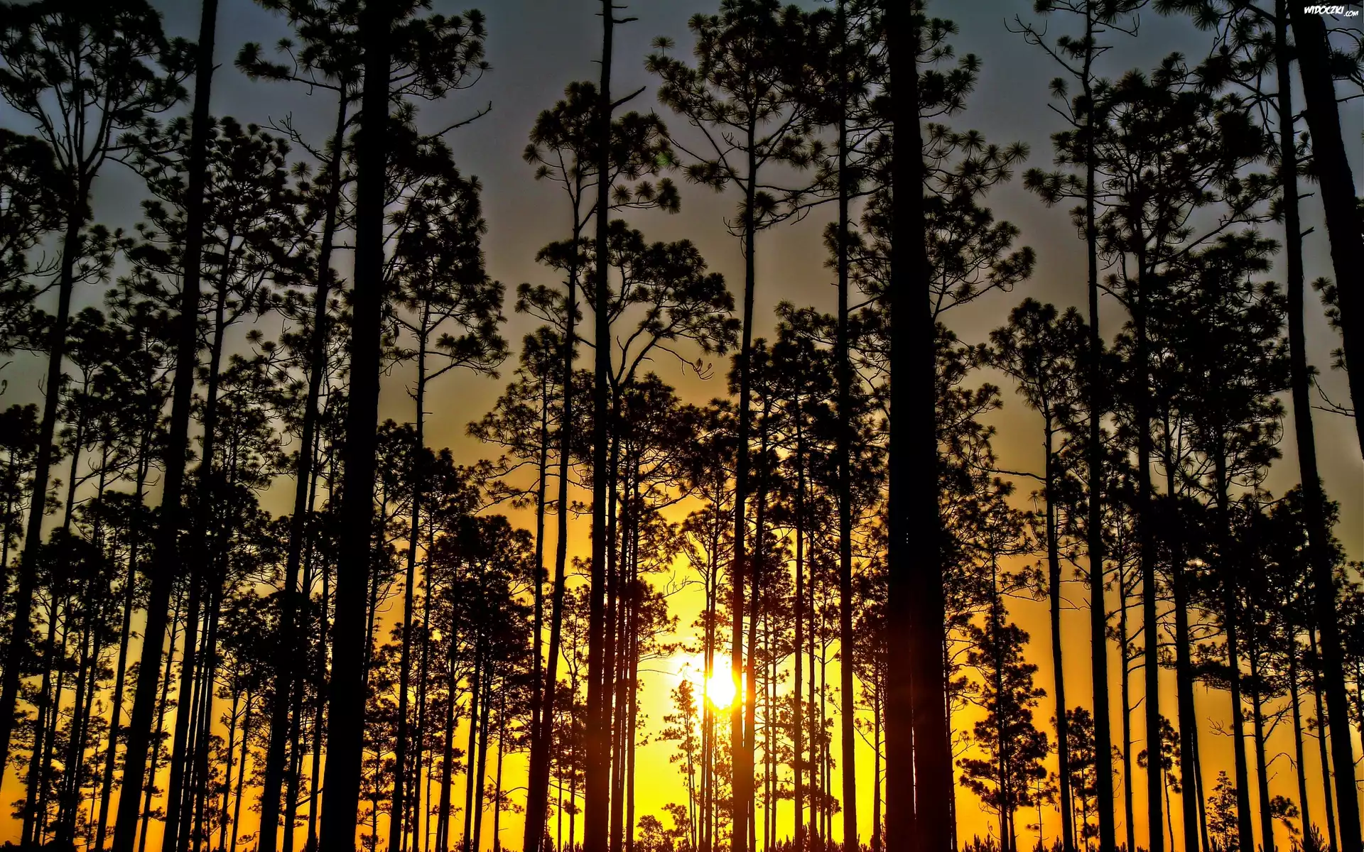 Zdjęcia, Zachód, Słońca, Drzewa