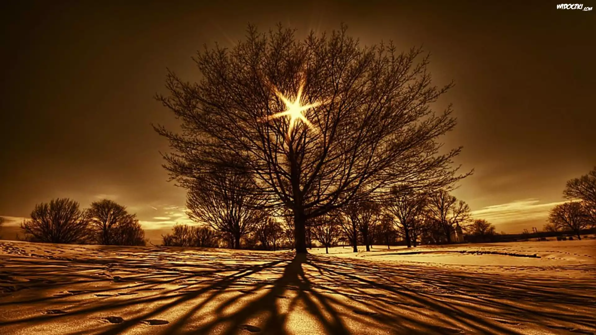 Zdjęcia, Zachód, Słonca, Drzewa