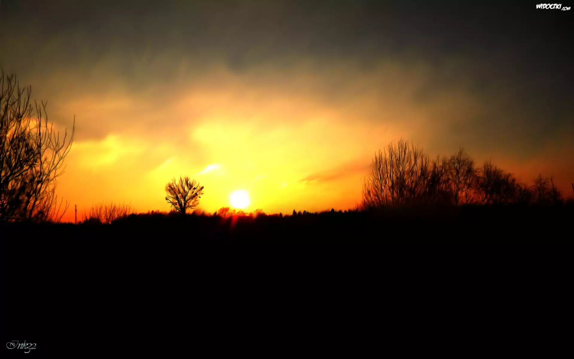 Zdjęcia, Zachód, Słońca, Drzewa