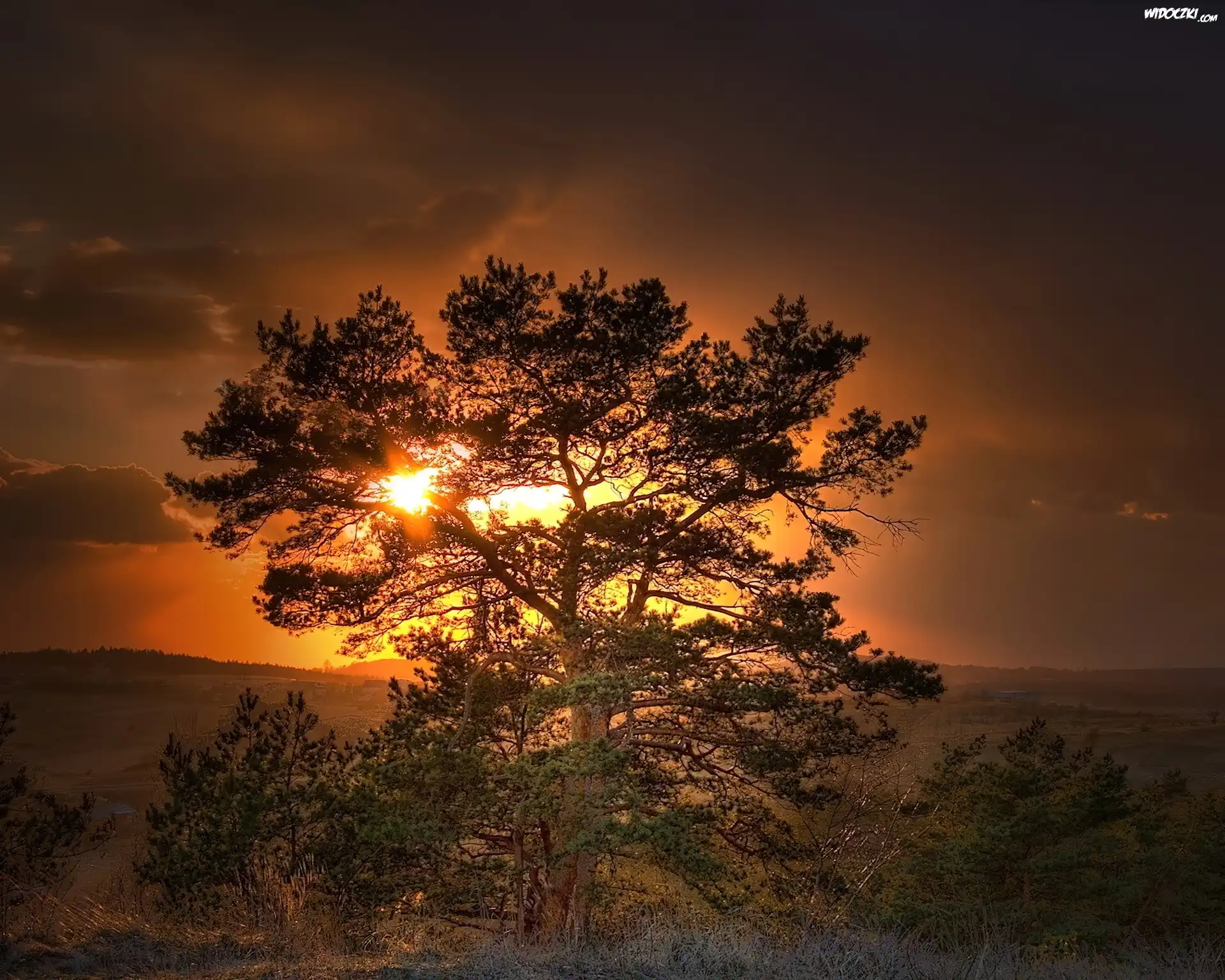 Zdjęcia, Zachód, Słońca, Drzewo