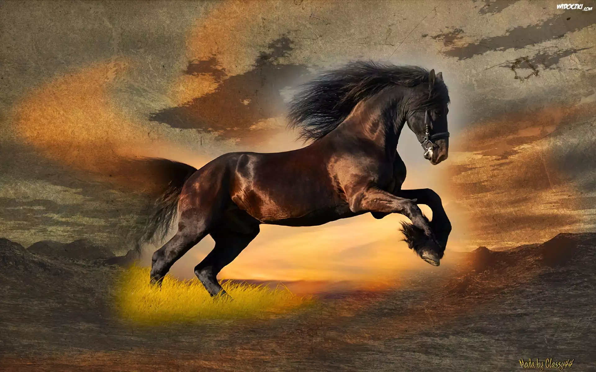 Zdjęcia, Zachód, Słońca, Koń