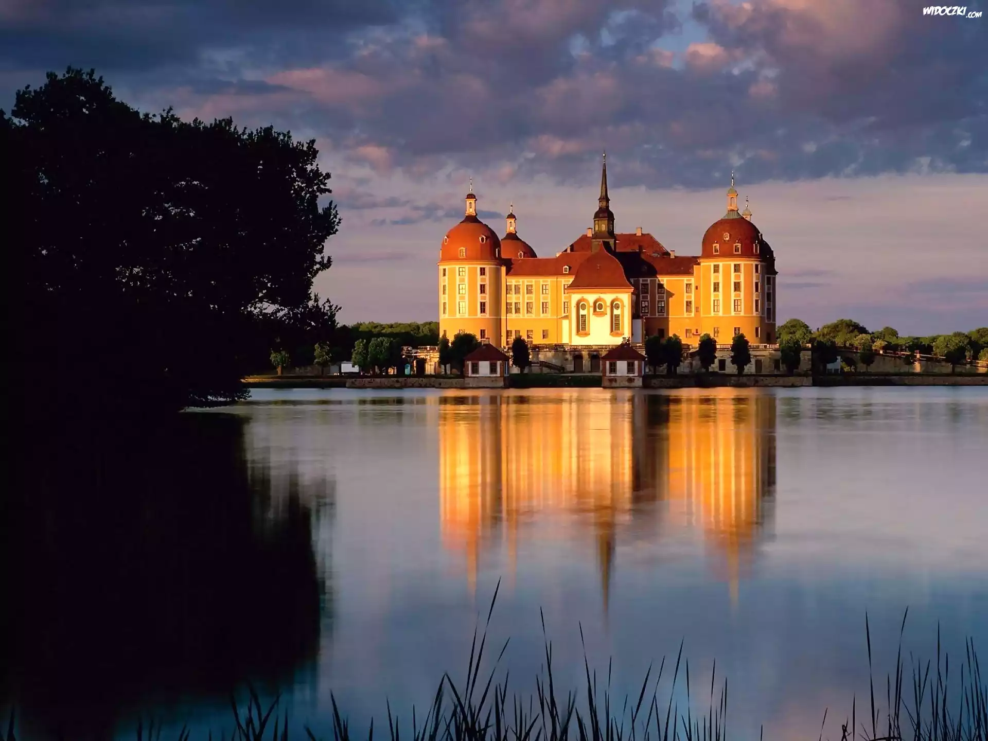 Zdjęcia, Zachód, Słońca, Jezioro, Pałac, Na Wodzie, Moritzburg