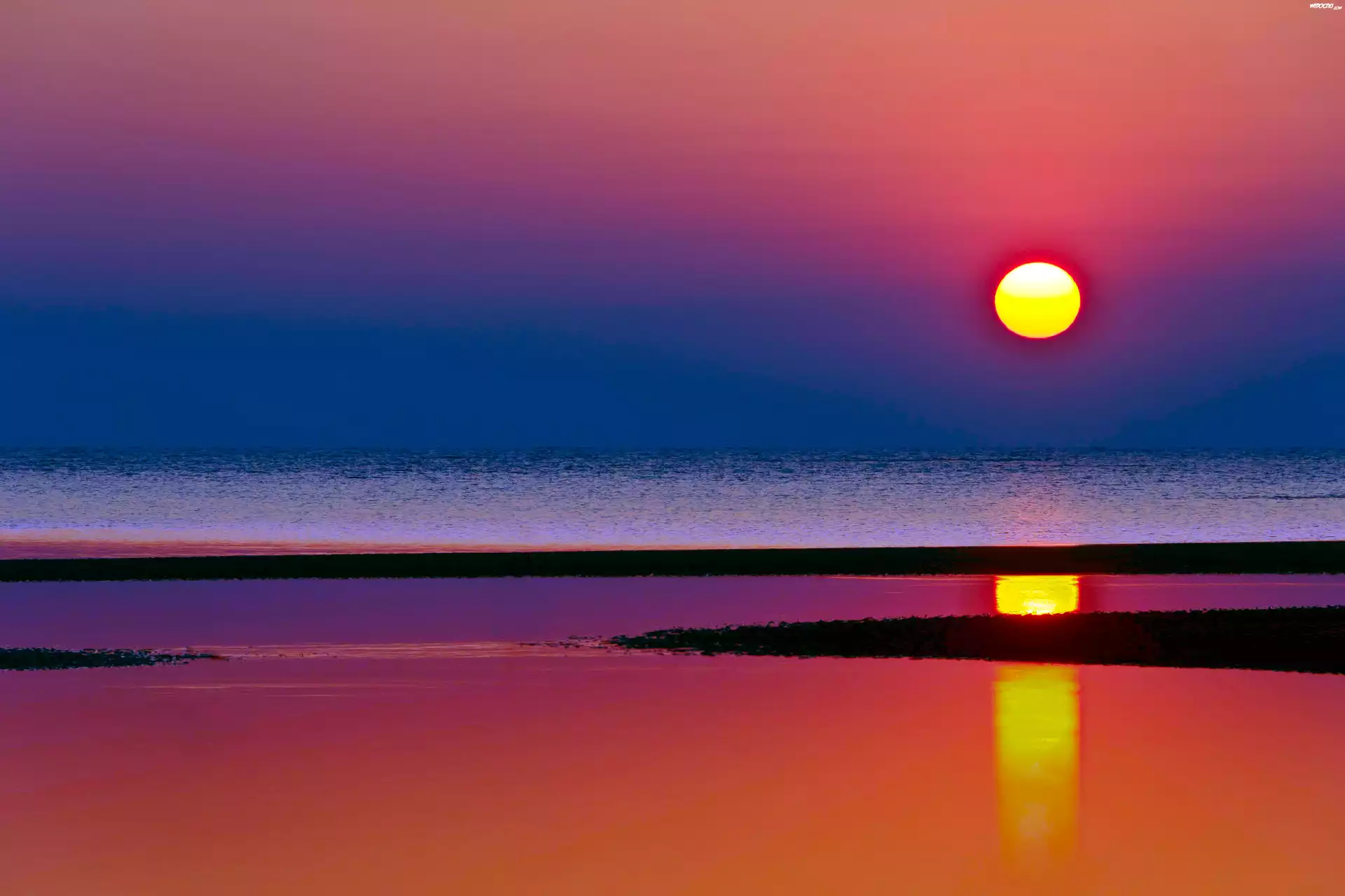 Zdjęcia, Zachód, Słońca, Plaża