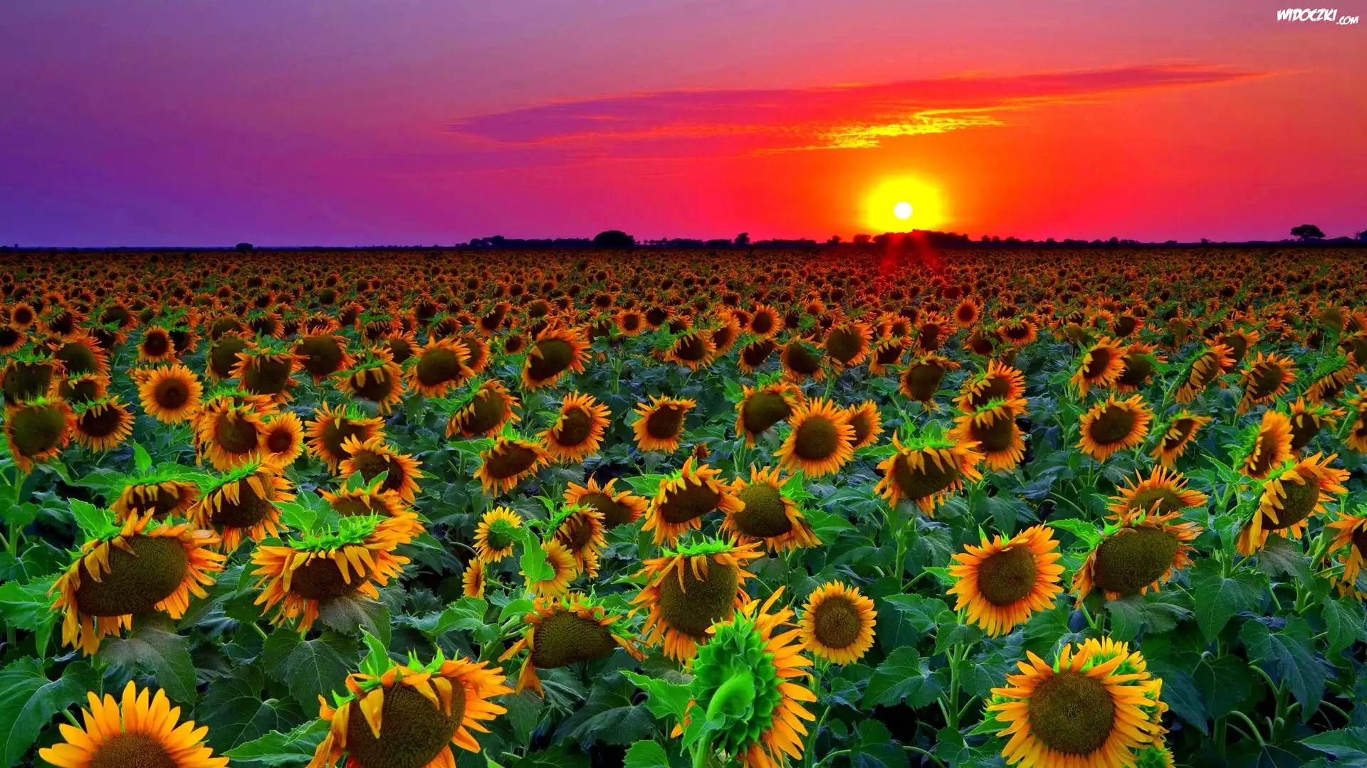 Zdjęcia, Zachód, Słońca, Słoneczniki