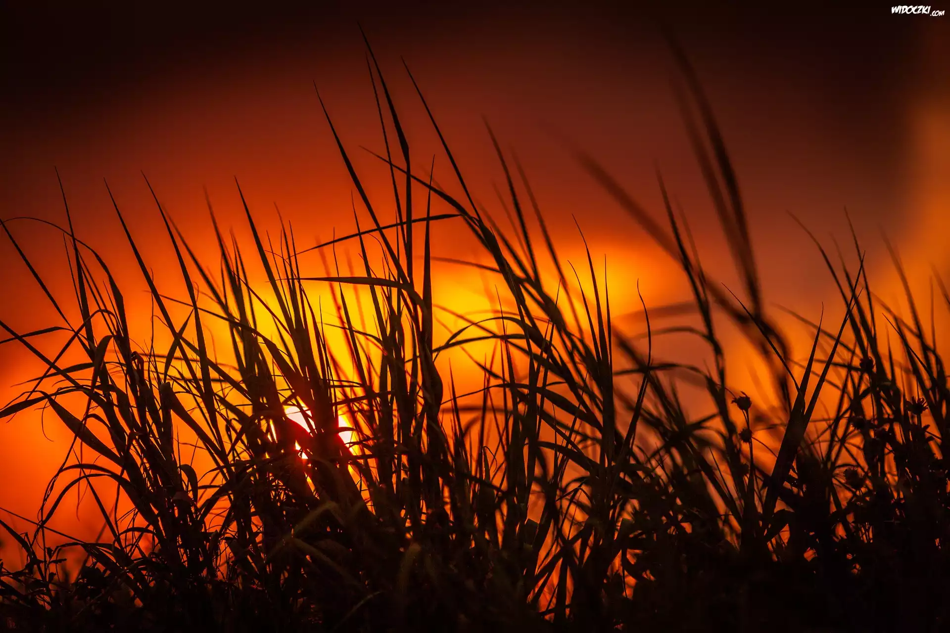 Zdjęcia, Zachód, Słońca, Trawy