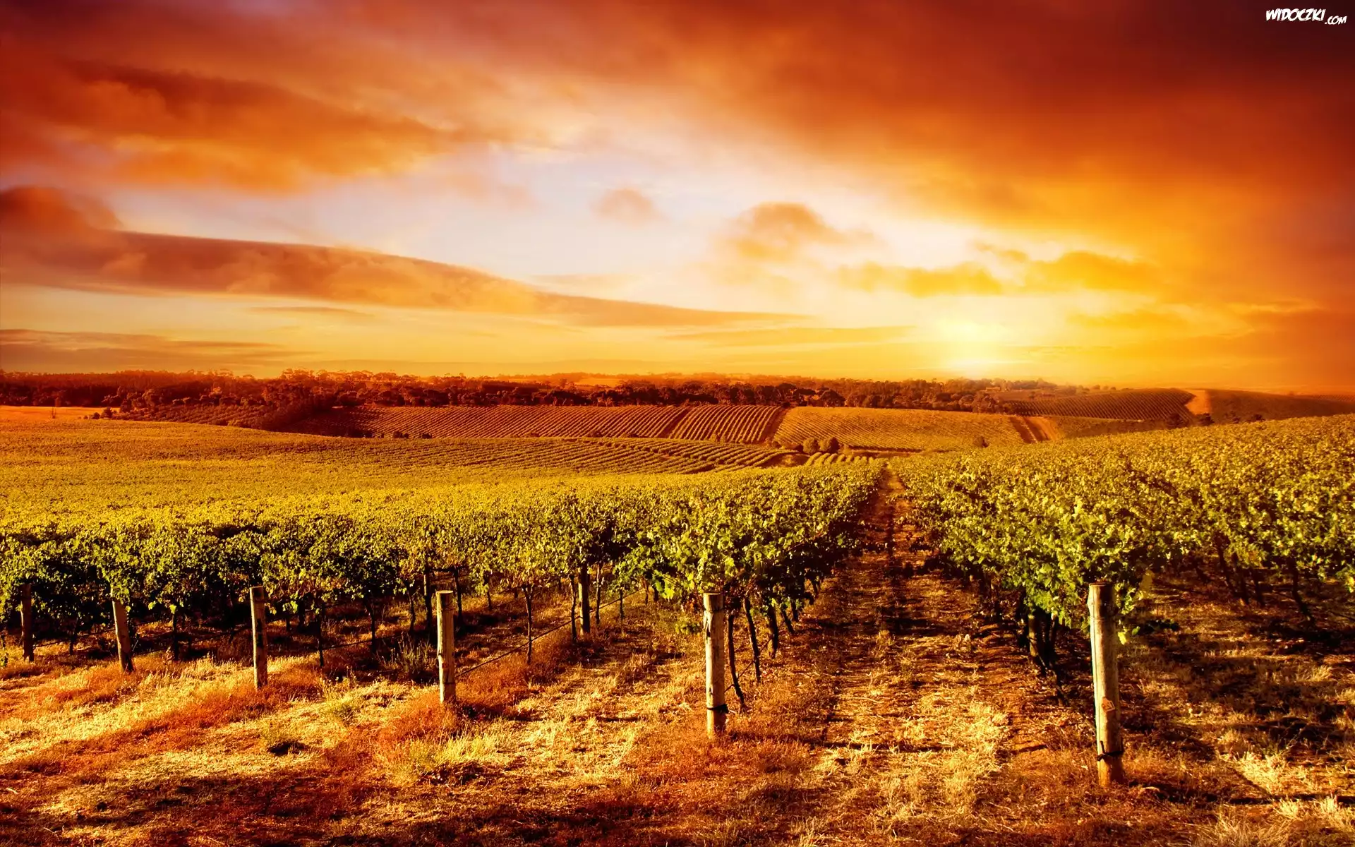 Zdjęcia, Zachód, Słońca, Winnica