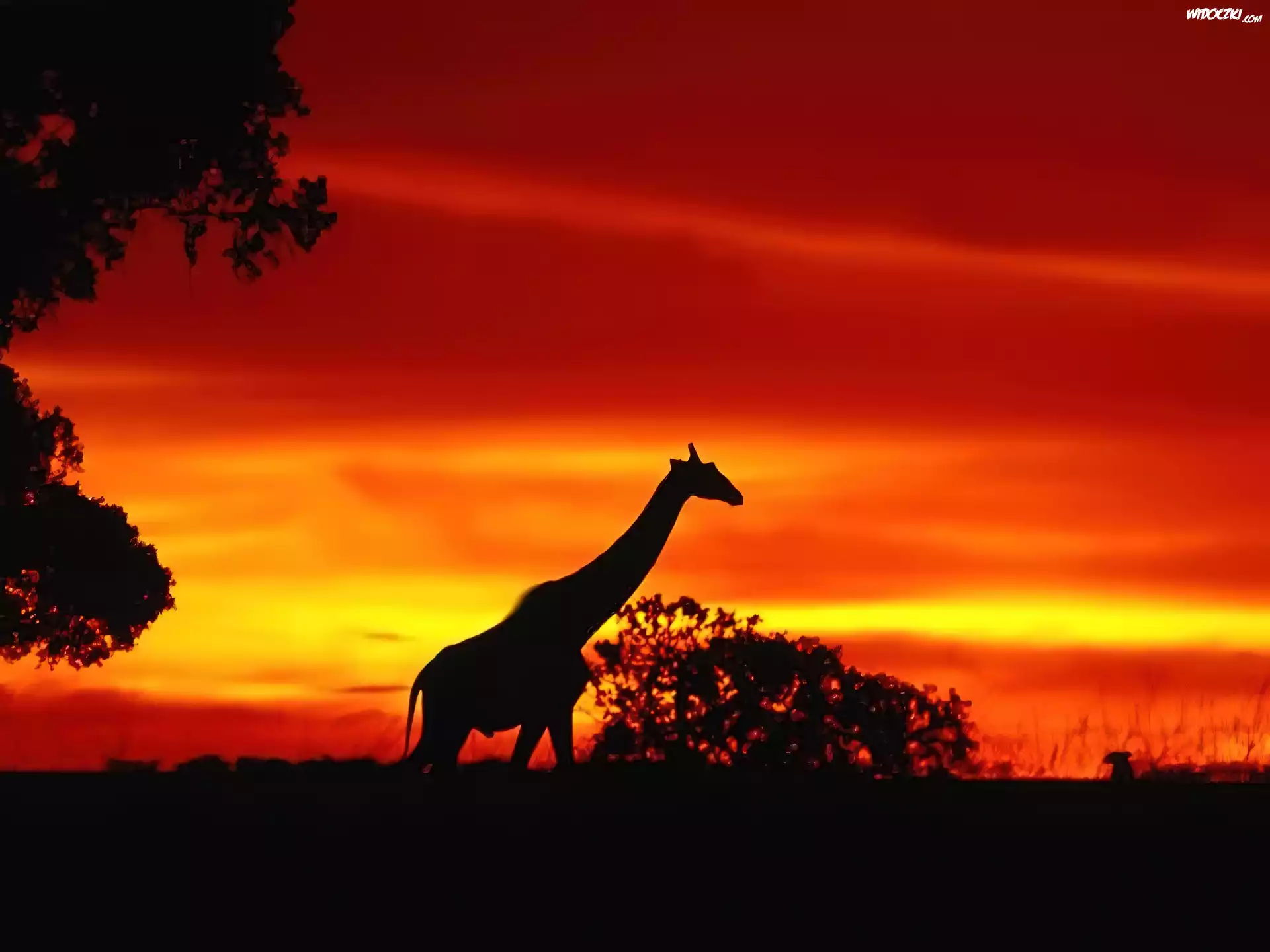 Zdjęcia, Zachód, Słońca, Żyrafa