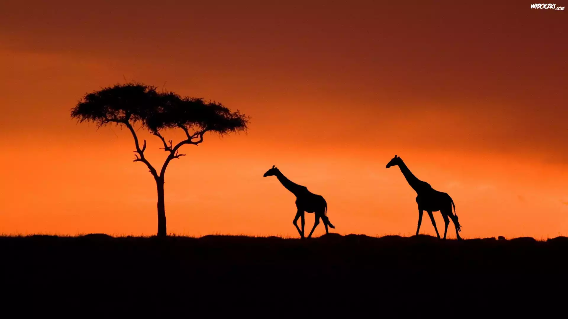 Zdjęcia, Zachód, Słońca, Żyrafy