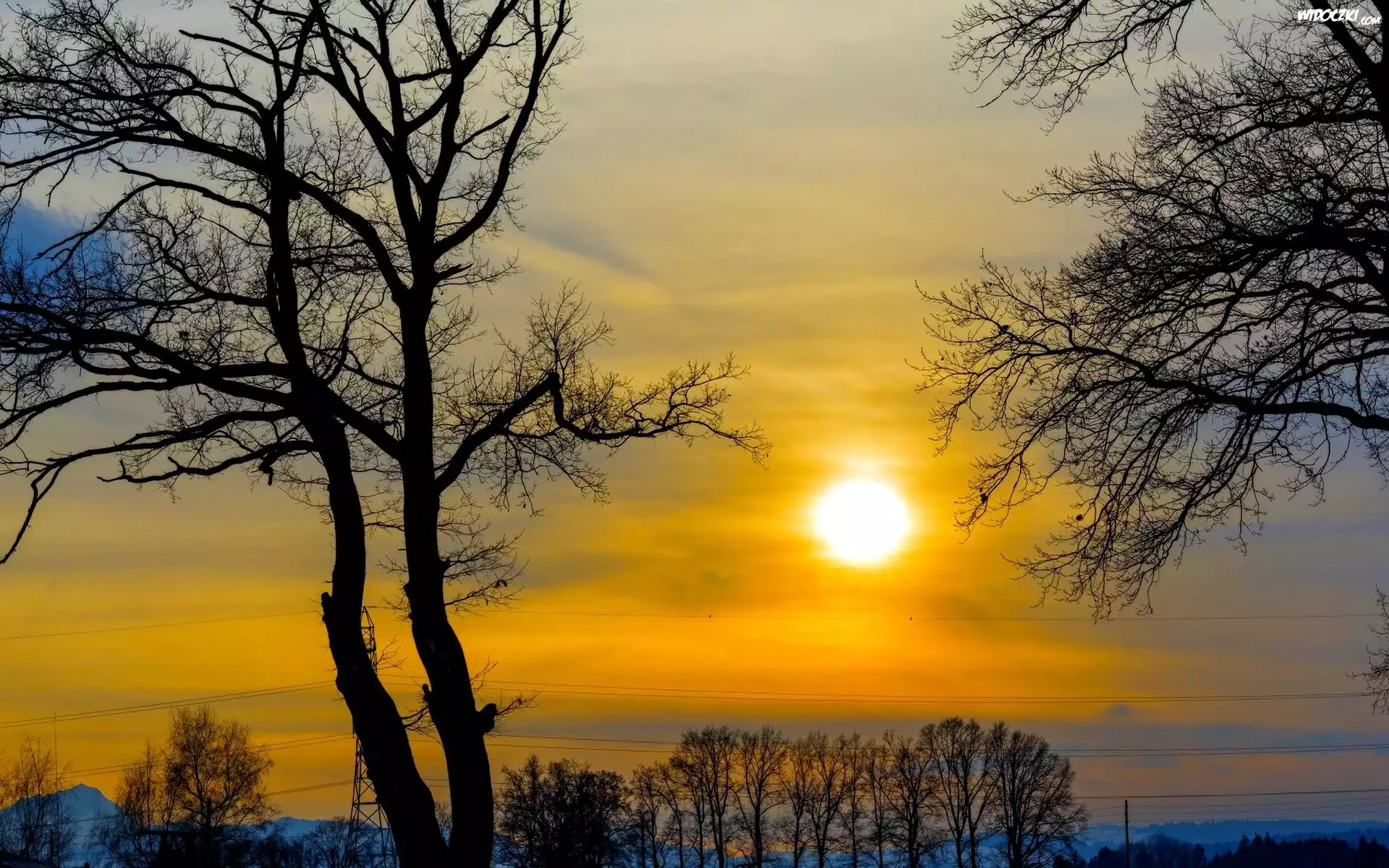 Zdjęcia, Drzewa, Słońce, Chmury