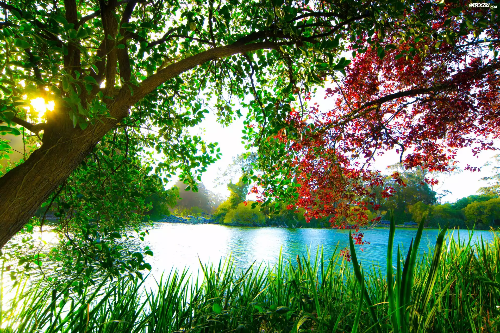 Zdjęcia, Drzewo, Słońce, Jezioro