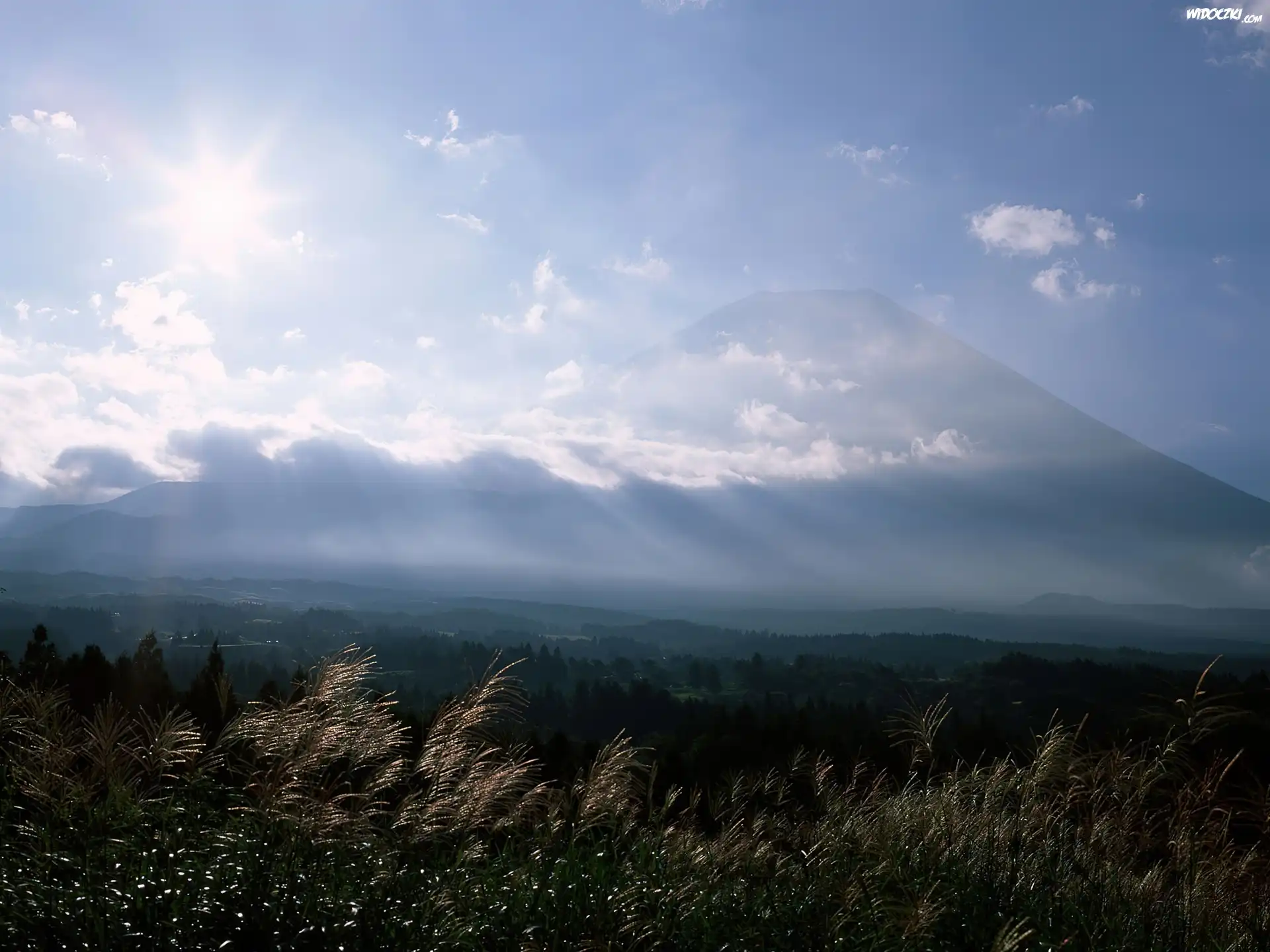 Zdjęcia, Słońce, Niebo, Chmury, Promienie, Góry