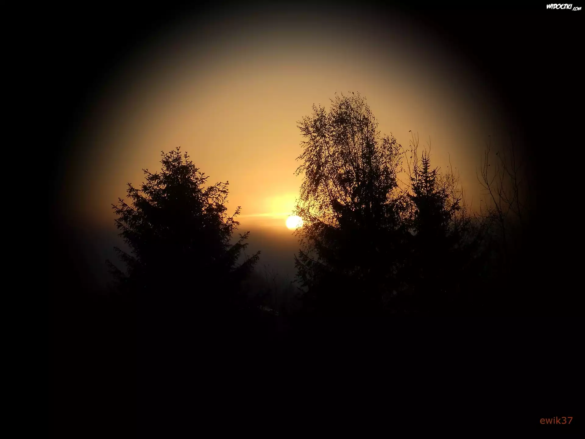 Zdjęcia, Wschodzące, Słońce, Drzewa
