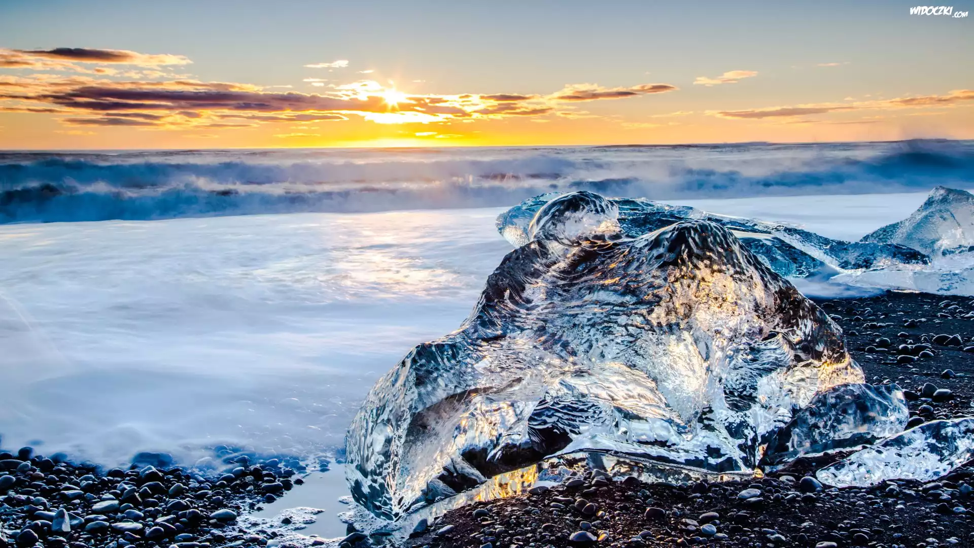 Zdjęcia, Słońce, Chmury, Niebo, Morze, Zima, Kamienie