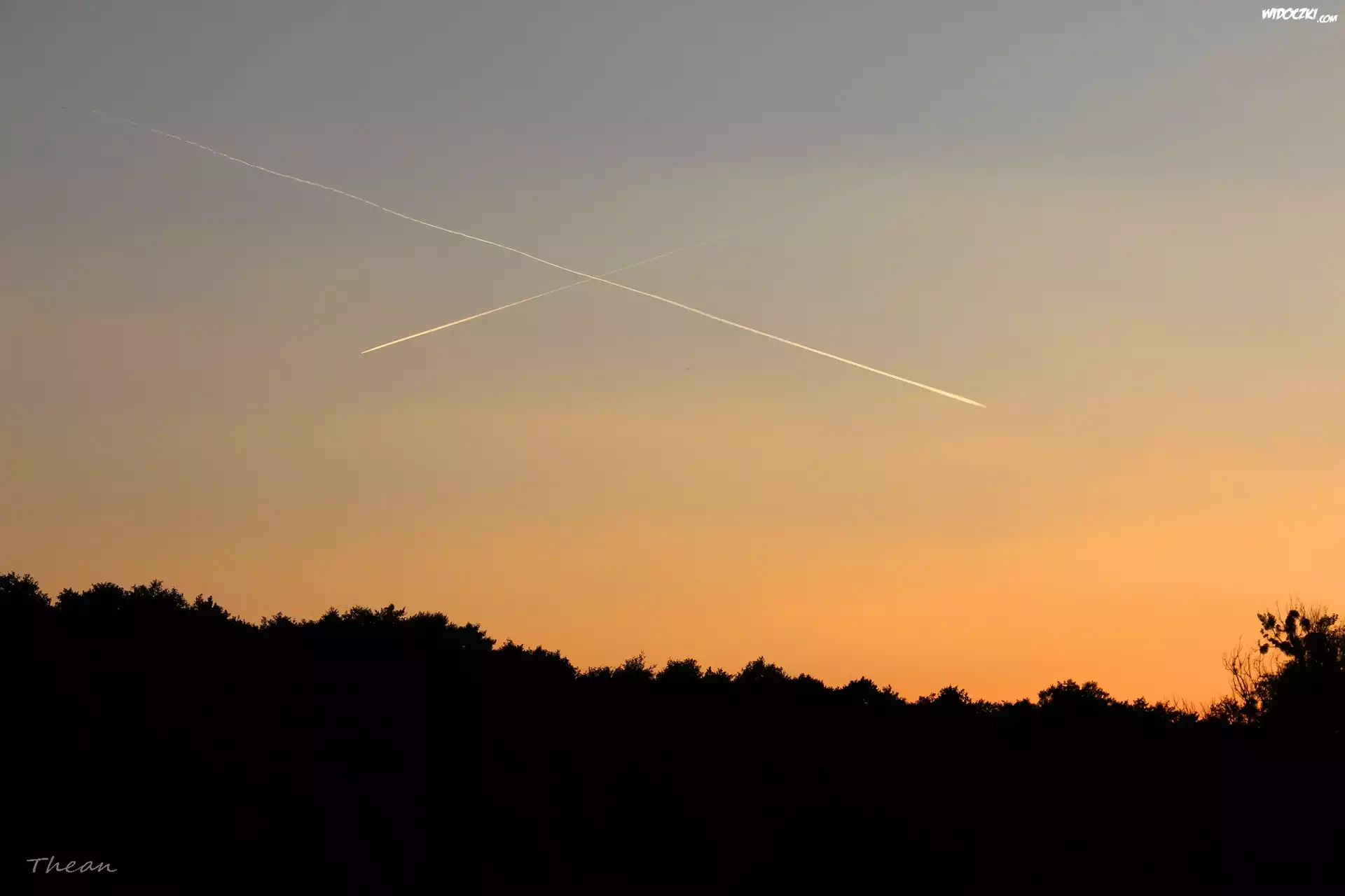 Zdjęcia, Smugi, Kondensacyjne, Niebo, Wieczór