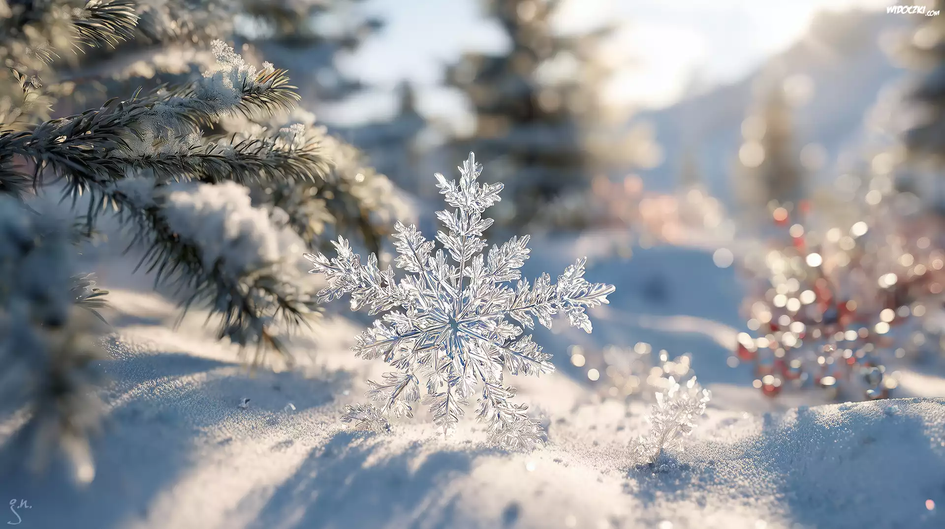 Zdjęcia, Śnieżynka, Śnieg, Gałązki, Śnieg, Grafika AI