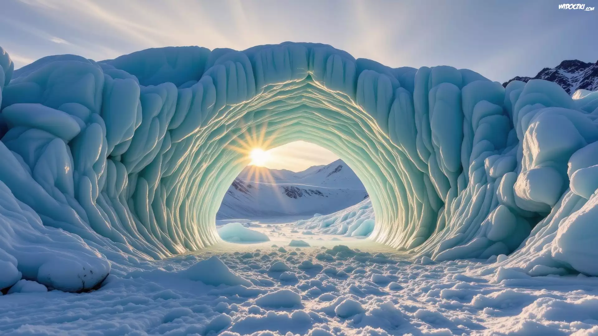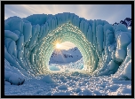 Zdjęcia, Zima, Promienie słońca, Śnieg, Łuk, AI