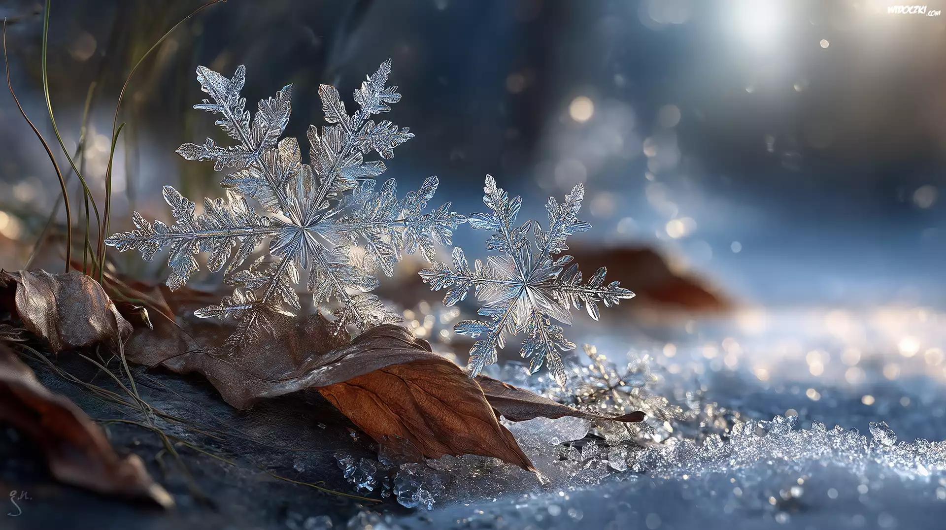 Zdjęcia, Dwie, Śnieżynki, Zima, Śnieg, Grafika AI