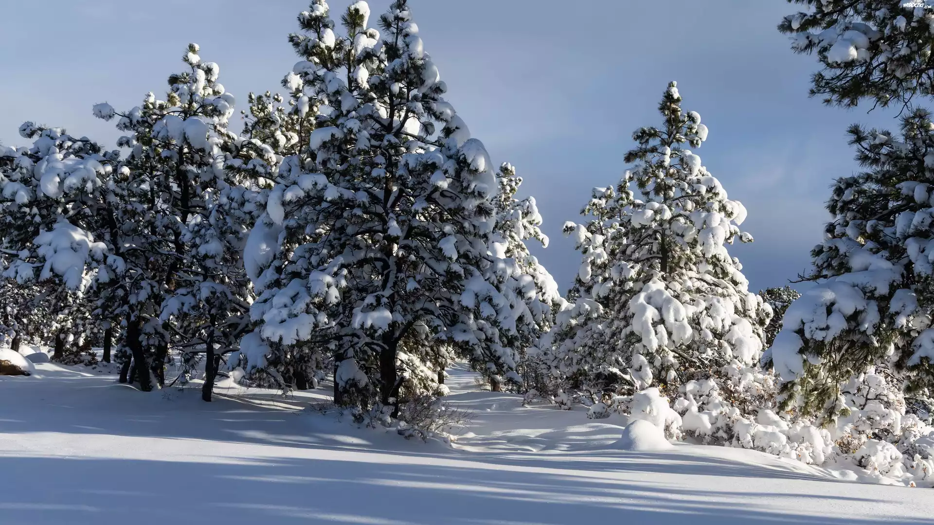 Drzewa, Zima, Las, Åšnieg