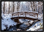 Zdjęcia, Zima, Drzewa, Las, Rzeka, Ośnieżony, Drewniany, Most, Śnieg