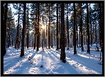 Las, Sosnowy, Drzewa, Śnieg, Promienie słońca