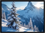 Zima, Góry, Drzewa, Śnieg, Promienie słońca