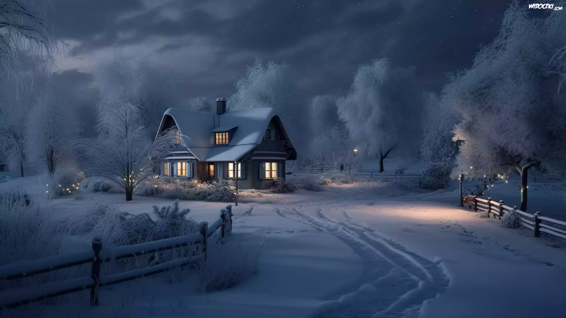 Zdjęcia, Zima, Dom, Drzewa, Śnieg