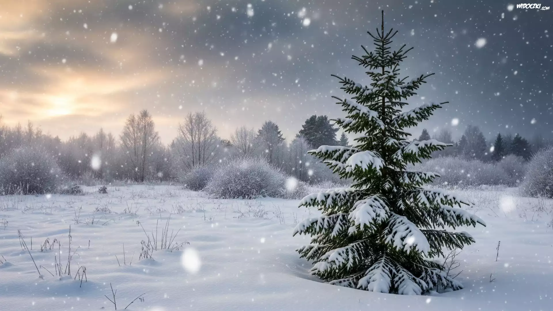 Zdjęcia, Padający, Śnieg, Zima, Ośnieżone, Drzewa