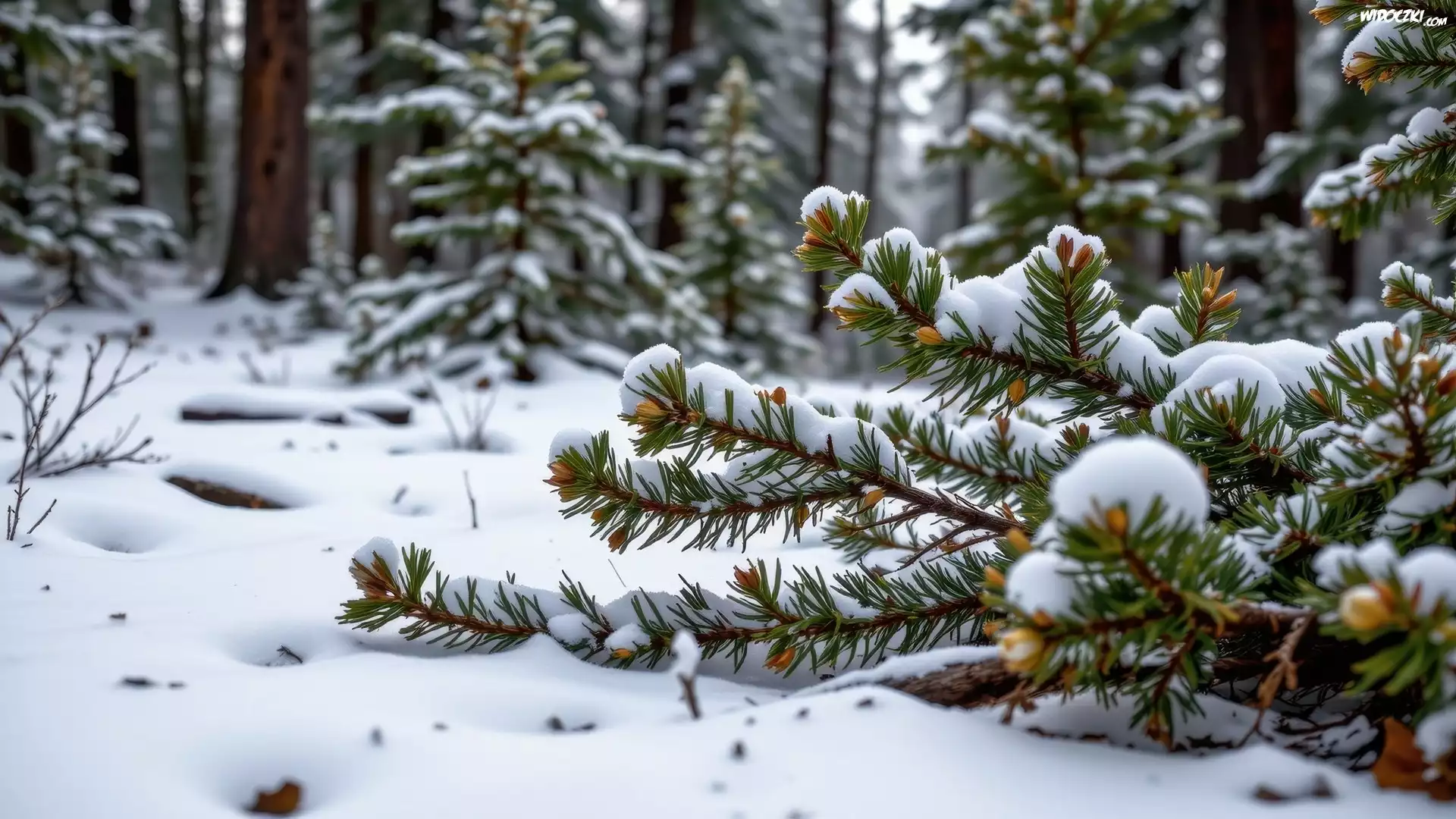 Zdjęcia, Zima, Las, Gałązki, Śnieg