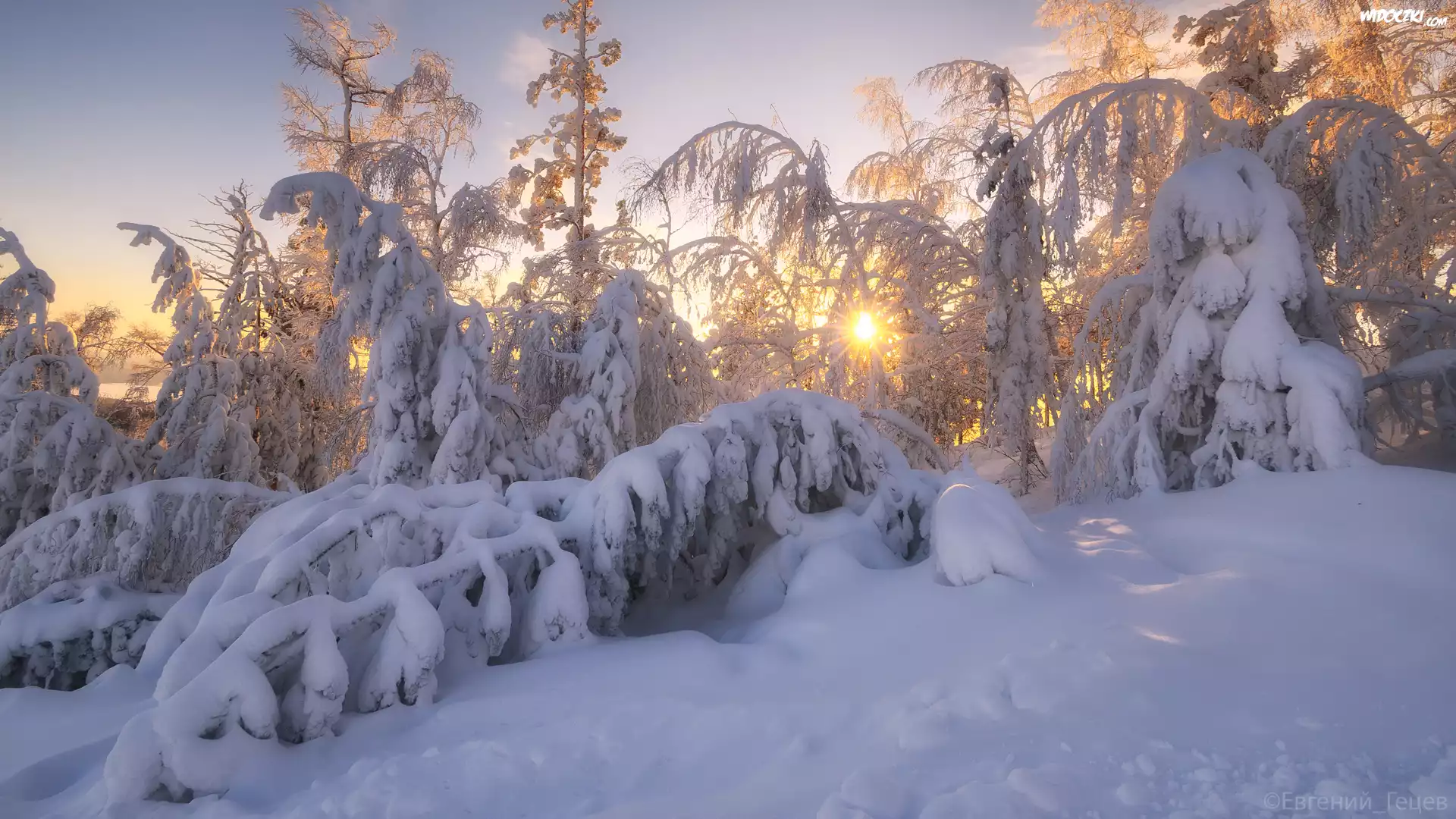 Zdjęcia, Drzewa, Śnieg, Zima, Wschód słońca