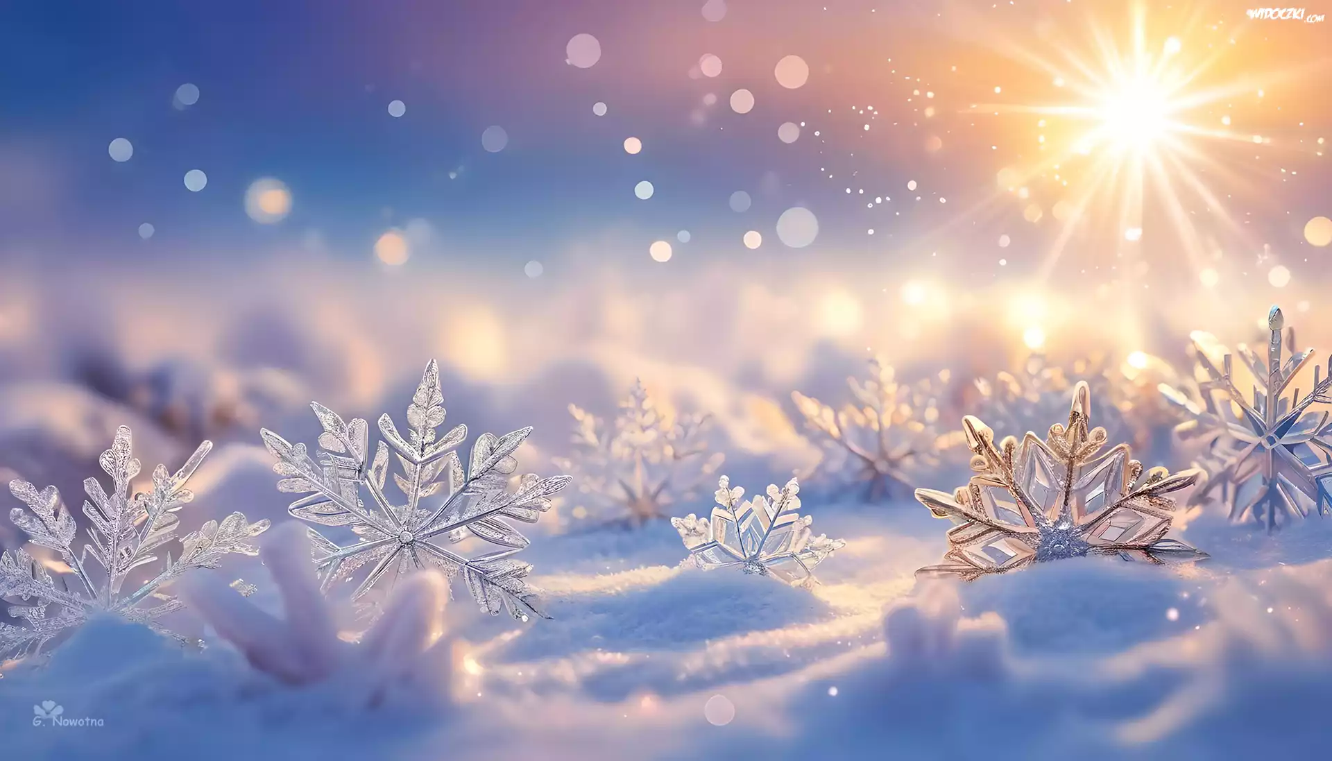 Zdjęcia, Zima, Śnieżynki, Śnieg, Grafika, Słońce