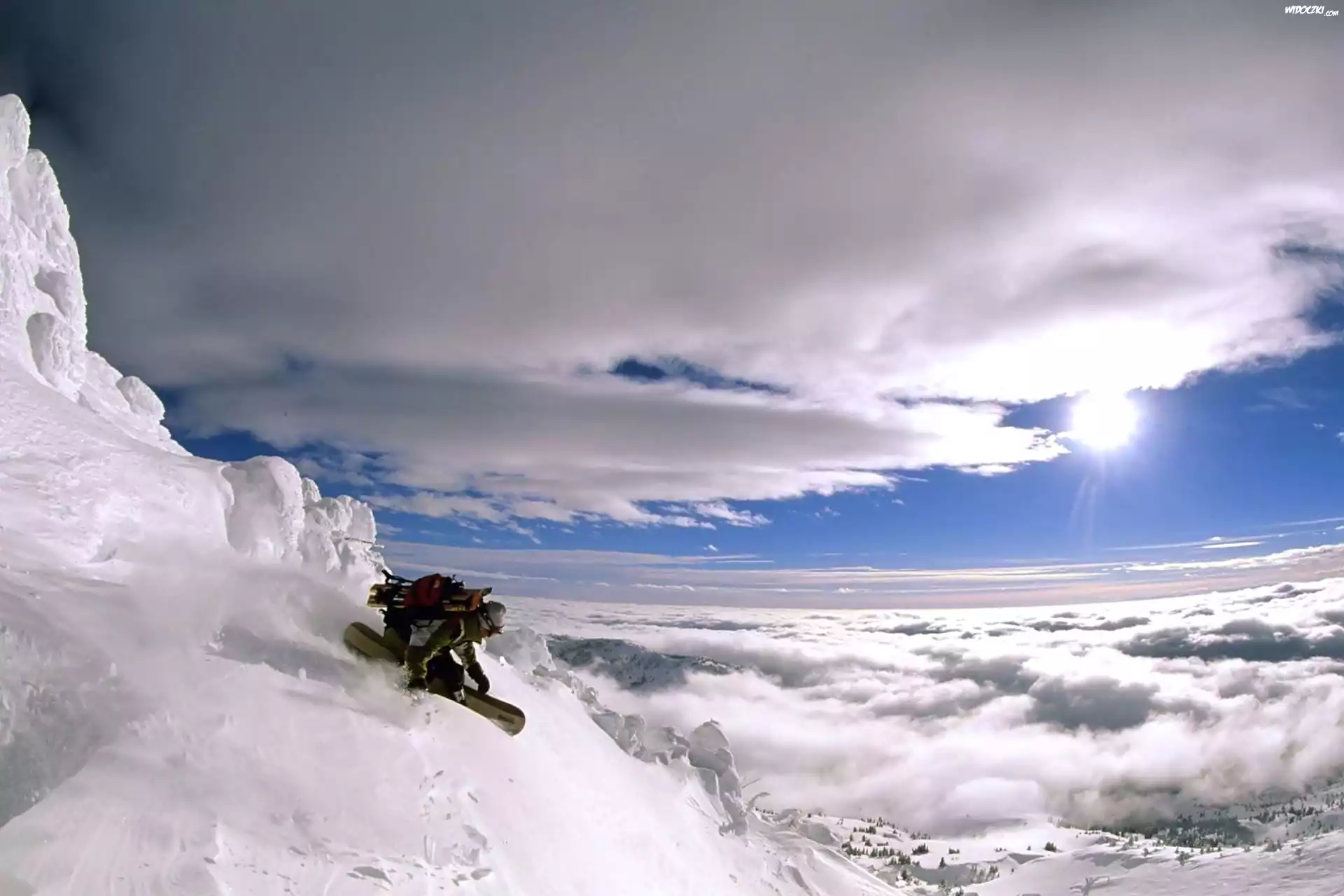 Snowboard, Stok, Chmury, Åšnieg