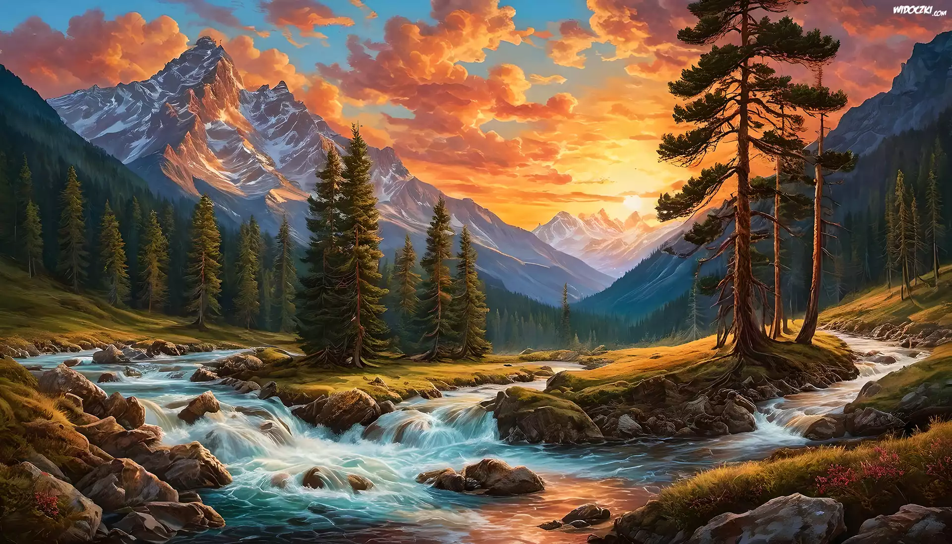 Rwący, Strumień, Góry, Sosny, Grafika, Drzewa