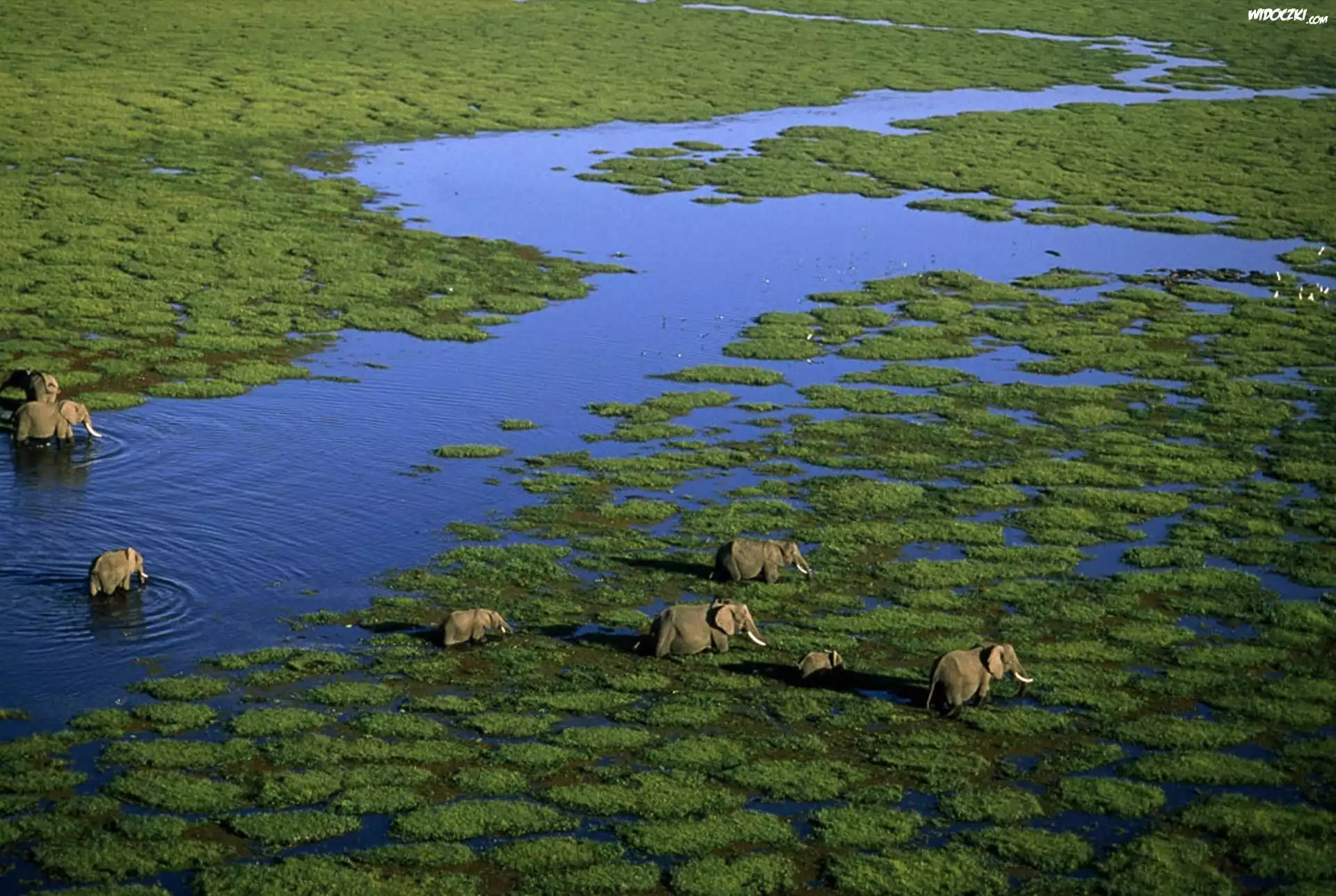 Zdjęcia, Stadko, Słoni, Rzeka, Rozlewisko
