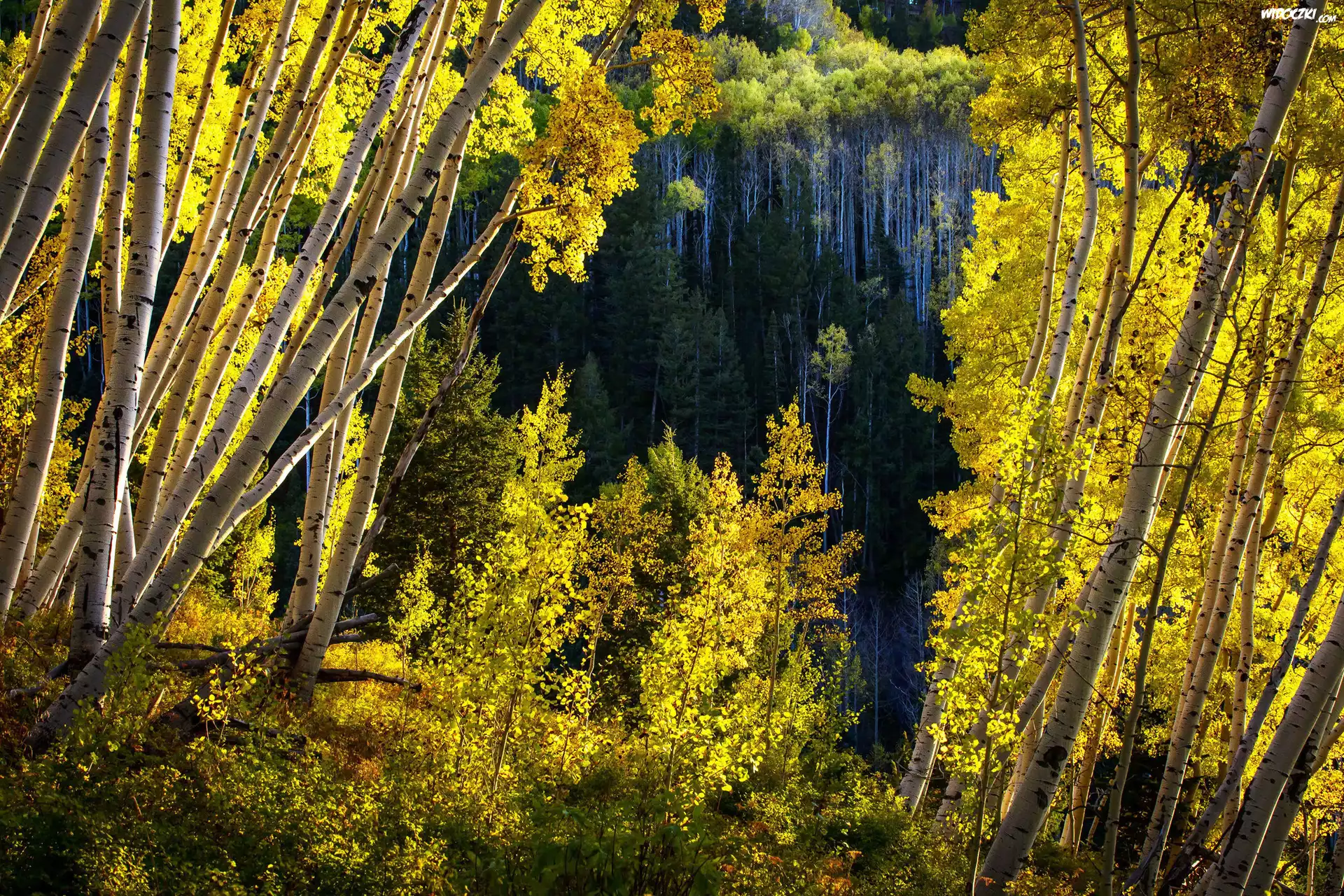 Zdjęcia, Stany Zjednoczone, Stan Kolorado, Brzozy, Las Państwowy White River National Forest