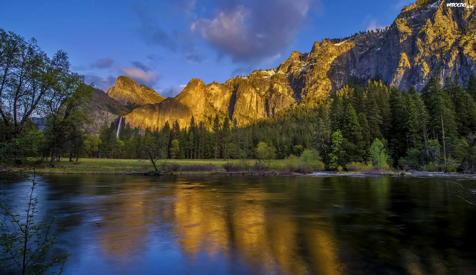 Zdjęcia, Stany Zjednoczone, Stan Kalifornia, Park Narodowy Yosemite, Rzeka Merced, Góry, Drzewa