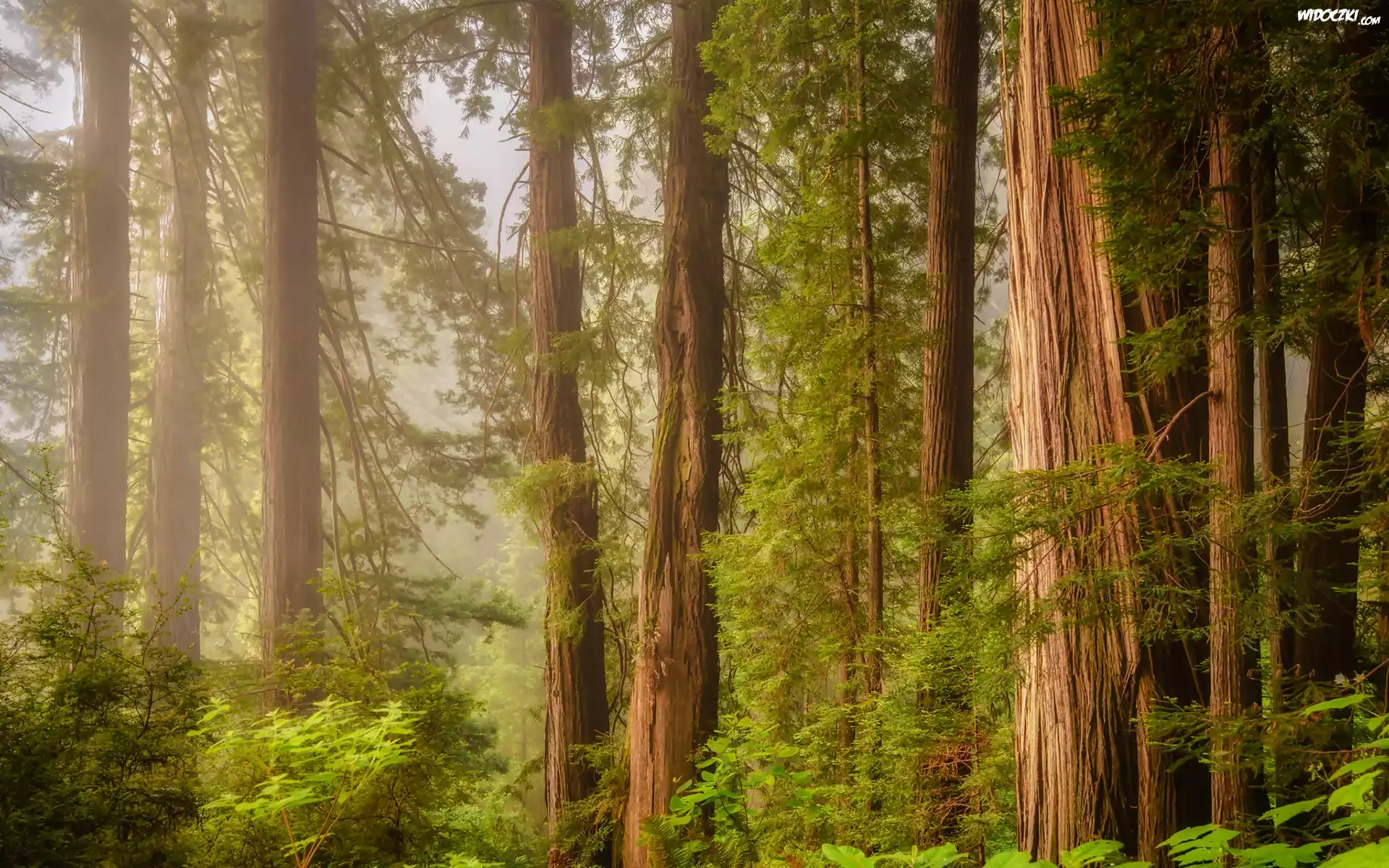 Zdjęcia, Stany Zjednoczone, Stan Kalifornia, Park Narodowy Redwood, Las, Mgła, Drzewa, Sekwoje