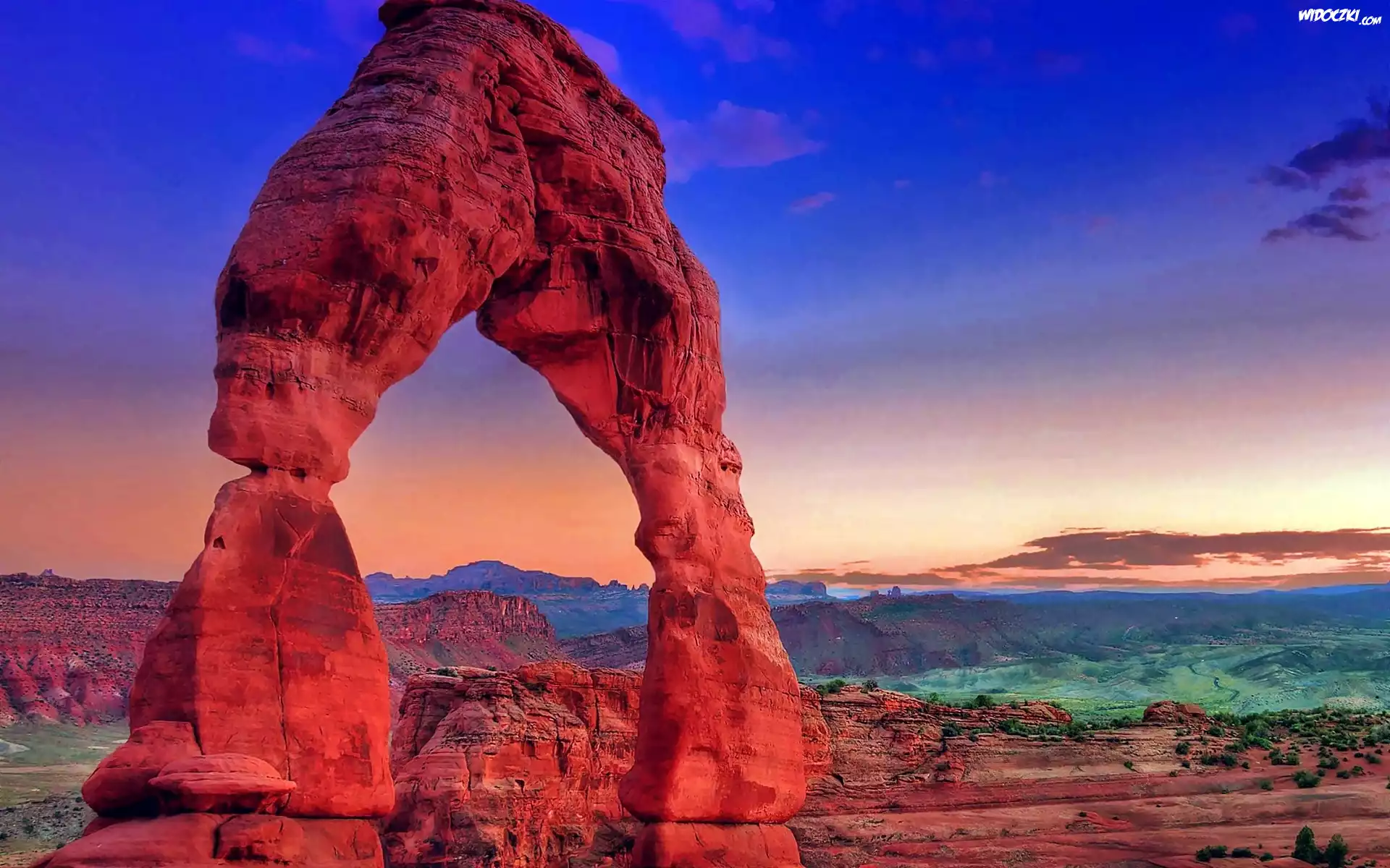 Zdjęcia, Stany Zjednoczone, Stan Utah, Park Narodowy Arches, Skały, Kanion, Przebijające, Światło