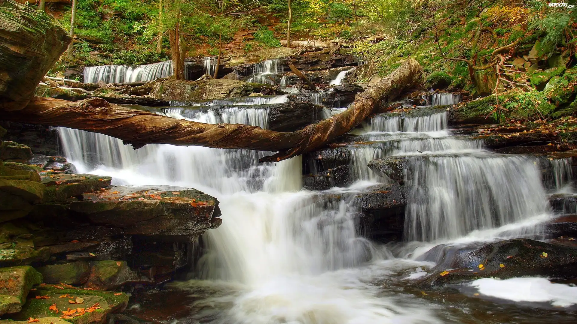 Zdjęcia, Stany Zjednoczone, Stan Pensylwania, Ricketts Glen State Park, Wodospad, Las, Drzewa