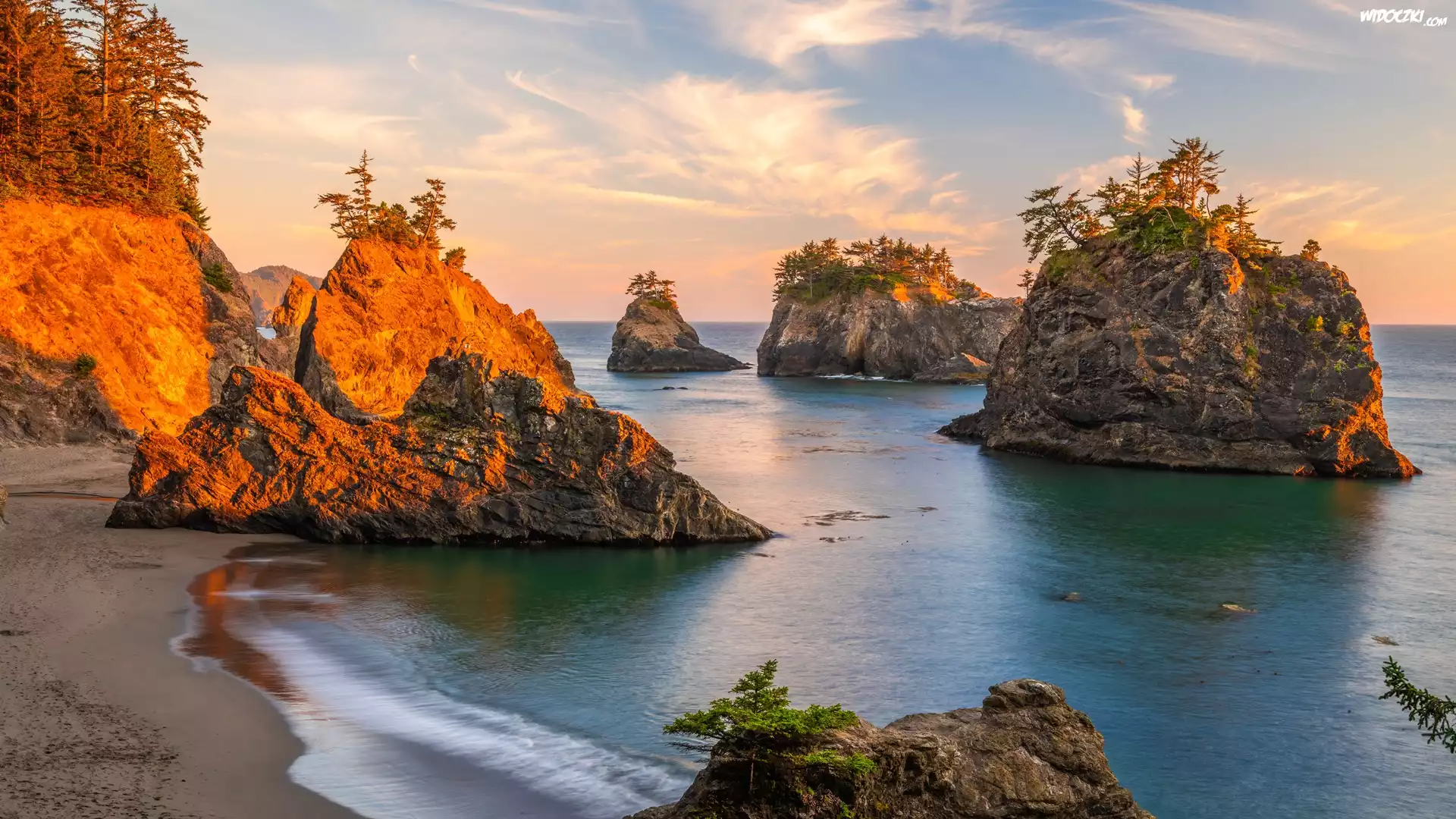 Morze, Skały, Drzewa, Park stanowy, Samuel H Boardman State Scenic Corridor, Oregon, Stany Zjednoczone |