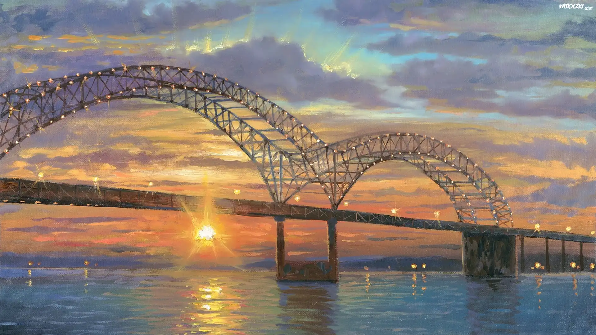 Stany Zjednoczone, Stan Tennessee, Memphis, Most Hernando de Soto Bridge, Rzeka Missisipi, Malarstwo, Robert Finale, Wschód słońca |