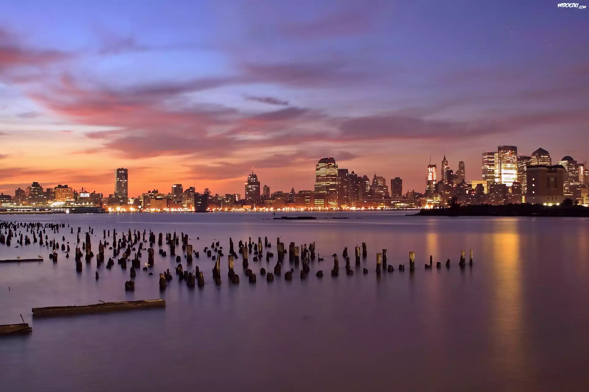 Zdjęcia, New Jersey, Stany Zjednoczone, Drapacze Chmur, Zdjęcie Miasta, Zachód Słońca, Rzeka